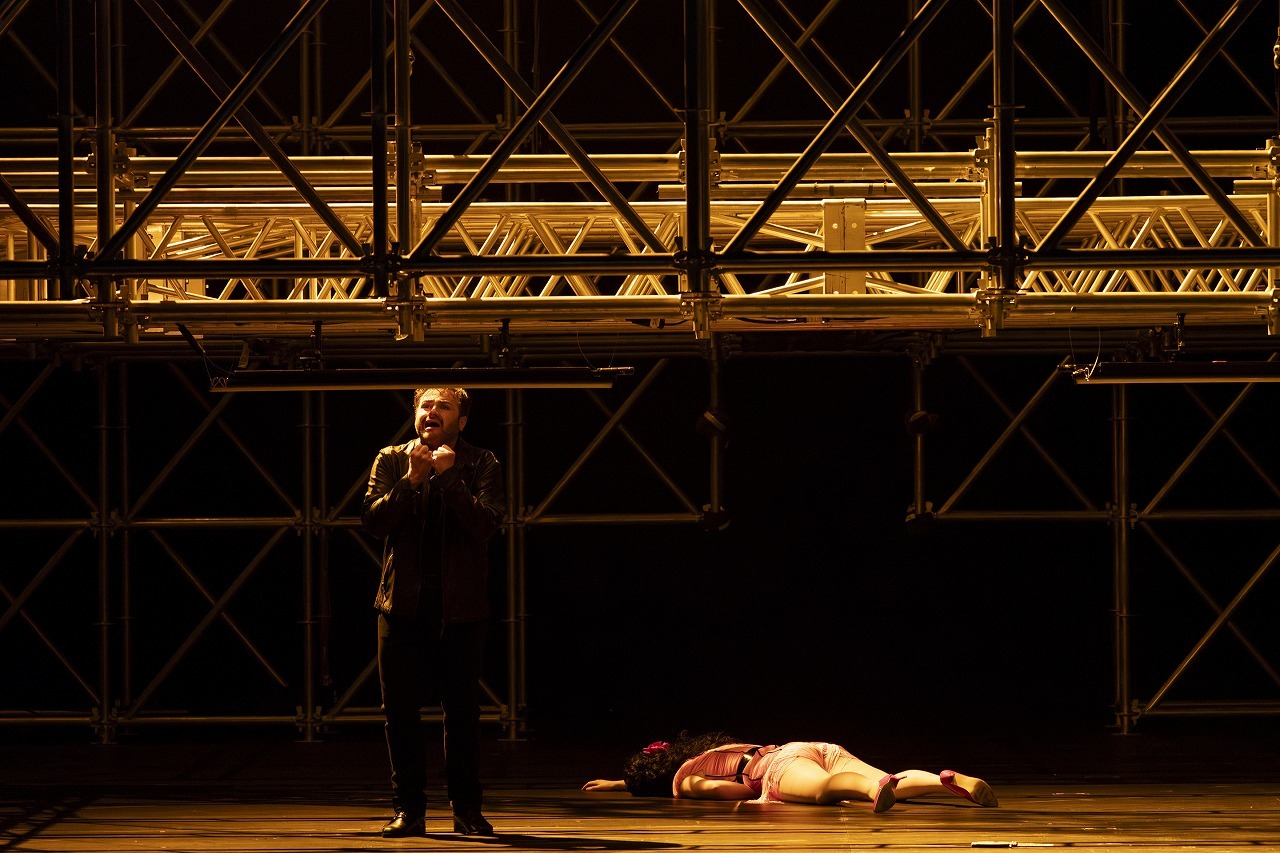 この『カルメン』の演出では、美術家のアルフォンス・フローレスが、舞台全体を覆う、あたかも鉄骨の巨大な牢獄のような、一度入ったら誰も出られない迷宮のような大建築を構築しました。まず舞台の大建造物から感じる、逃れられない、囚われた感じ。それに対し、人間という存在の証明としてビゼーが書いた「自由」のいぶき。オリエ氏がこの『カルメン』で見せたのは、それだと思います。完全上演となった『カルメン』をぜひ皆さんの目で見届けてください。