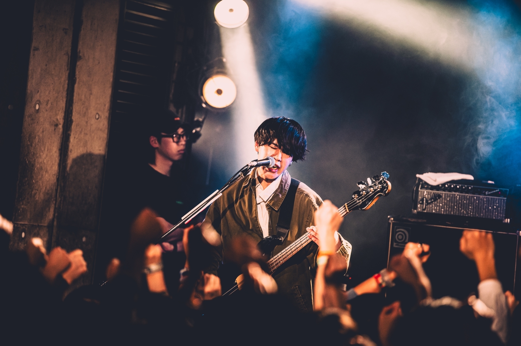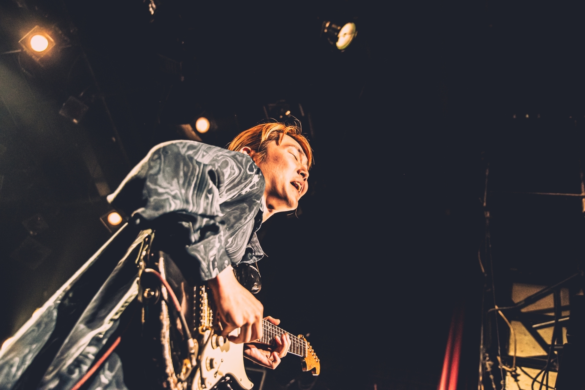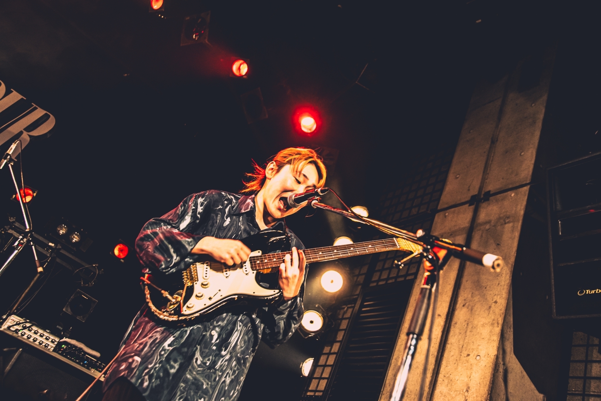 加えてMCでも佐藤は「やってくれたなSHE’S!」と対抗心をむき出しにしたかと思えば、「生まれ変わったらあの人になりてえんだよ。ピアノ弾いてよ、歌いてえんだよ」と井上のマネも。そして完売となった今日の公演については「やばくね? 狭い部屋でさ、書いた歌詞がここまで届いたんだぜ。めっちゃうれしいわ!」と語り、次は「ためいき」と「メリーゴーランド」を。やわらかなボーカルやきらめくメロディ、さらにスピード感や髪を振り乱す佐藤の姿でまたも観客を夢中にしたら、間髪入れずに今度は浮遊感あるギターも印象的な「ジェリーフィッシュ」のレトロフューチャーな質感。オーディエンスが大いに弾んで堪能すれば、佐藤からは「すげー景色だ」のひと言が。
