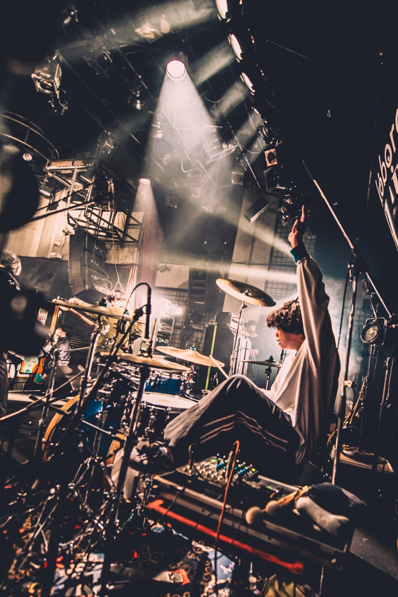 観客を釘付けにしたら「パーフェクトブルー」、「君にとって」、「熱狂」という猛攻でより高みへ。フロアの歌声も大きくなって興奮の度合いも上昇の一途。文字どおりに熱狂が渦を巻く。4人も息が上がったようで、呼吸を整えながら佐藤は「いっぱい笑えた? いっぱい泣けた?」と問いかけ、「SHE’Sは俺の元カノが聴いてました(笑)」と井上のMCにかぶせ、「SHE’Sになりたかった! そのほかにも(なりたいバンドが)いっぱいいた。ONE OK ROCK、RADWIMPS、BUMP OF CHICKEN。10年間バンドやってわかったよ。もう俺は憧れにはなれねえんだ。俺はお前にとっての佐藤赳であり続ける。俺らはお前にとって4人でkoboreであり続ける。そうやって真っすぐ、かっけーバンドになりたい!」と宣言。
