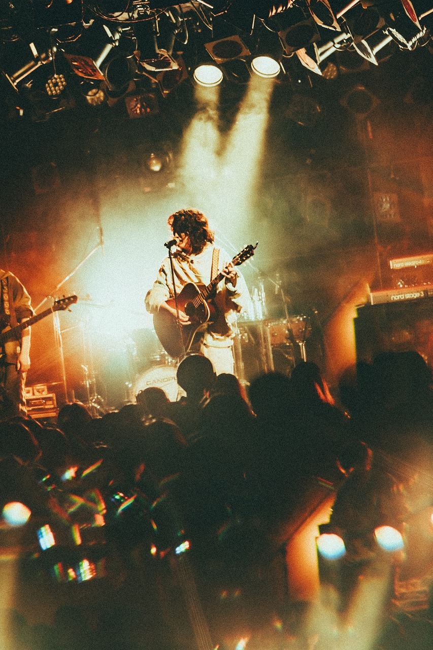 「最近、“幸せってなんだろう?”ってずっと考えて、やっと一つ見えたものがあって。それは“ありたい自分でいる”ということです」と語り始めた中盤でのMC。「いろんな人に優しくありたい」「誰に対しても優しくありたい」「他人の気持ちを尊重できる人になりたい」「自分にも他人にも嘘をつかない人になりたい」「一途な人でありたい」「やりたいことを一生懸命やる人でありたい」……ありたい自分像を列挙してから「全部挙げてくとわがままなんだよ。バレてる?(笑)」と笑った彼は、さらに言葉を続けた。「他人に迷惑をかけたり嫌なことをするんじゃなくて、他人のことを大切にできる上でわがままであれるのが自分の幸せ。幸せは未来にあるわけでも過去にあるわけでもなくて……。今、この瞬間に“ありたい自分であろう”と決意をすれば、そこに幸せが訪れると気づきました」という言葉に表れていた想いは、届ける音楽で次々体現されていった。「幸せの果てに」「反論」「全部しようぜ」「星の国から」……歌う喜びの申し子であり続けた彼は衝動にとことん忠実、紛れもなく“わがままな人物”であったが、観客の心を幸福の渦へと巻き込んでいた。