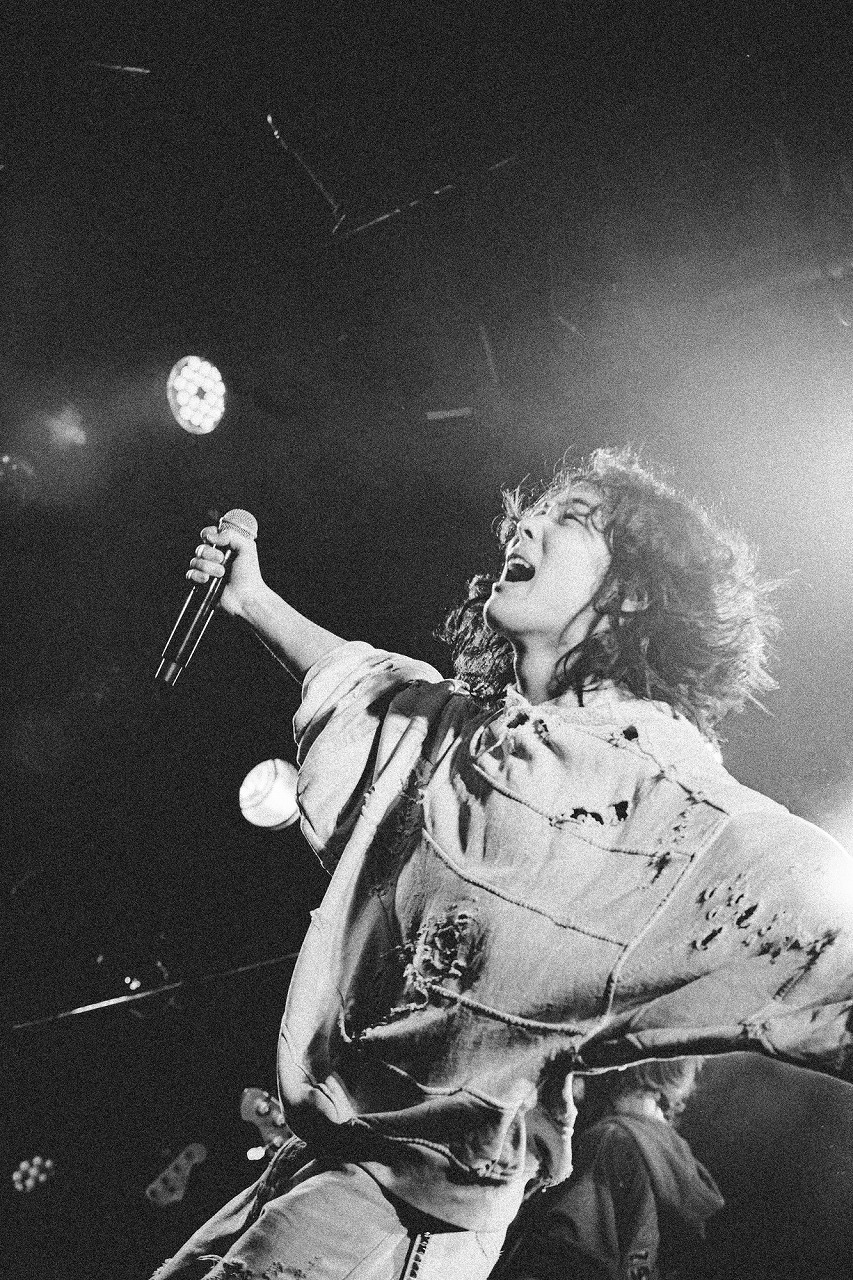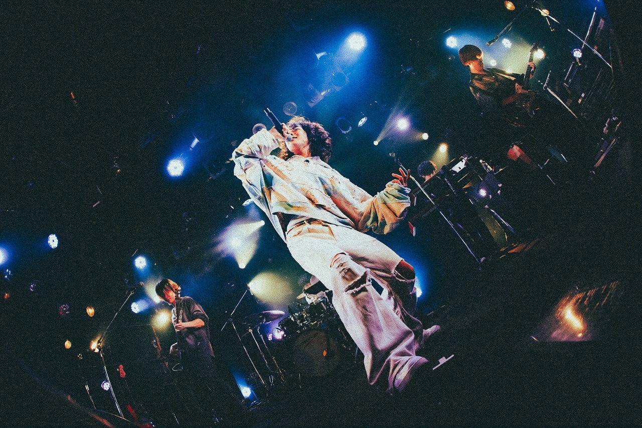 「楽しみたい時は一緒に楽しむし、苦しい時は抱き締めるし、一歩踏み出したい時は背中叩くし、そういう音楽、アーティスト、ライブをこれからもやっていきたいと思ってます。これからも応援をよろしくお願いします!」という言葉が添えられて、本編を締めくくった「よるおきてあさねむる」。ステージからフロアに向かって広がる温かなサウンドが、観客の掲げた掌を穏やかに揺らがせていた。この曲を届けた後、一旦ステージを後にした映秀。とバンドメンバー。しかしアンコールを求める手拍子に応えて彼らはすぐに戻ってきた。お揃いのツアーグッズを身につけている姿が微笑ましい。そして「アルバムは言葉を大切にして作ったって言ったんですけど、中でも自分にとって新しい取り組みをした曲があります。小説家のカツセマサヒコさんと一緒に作りました。最後に演奏して帰ろうと思います」という言葉の後、2曲が届けられた。瑞々しいサウンドが徐々に熱を帯びていく展開が素敵だった「瞳に吸い込まれて」。歌声が激しく震えた末に儚い余韻を残して幕切れた「youme」……曲に刻まれた世界と鮮やかにシンクロしていた歌は、演劇の一幕のようでもあった。歌い終えてからバンドメンバーと肩を組み、お辞儀をした映秀。の穏やかな笑顔が思い出される。歌っている時は“鬼気迫る”という表現がぴったりな時も度々ある彼なのだが、それ以外の場面では天真爛漫この上ない。そんな彼の魅力も再確認できるエンディングだった。
