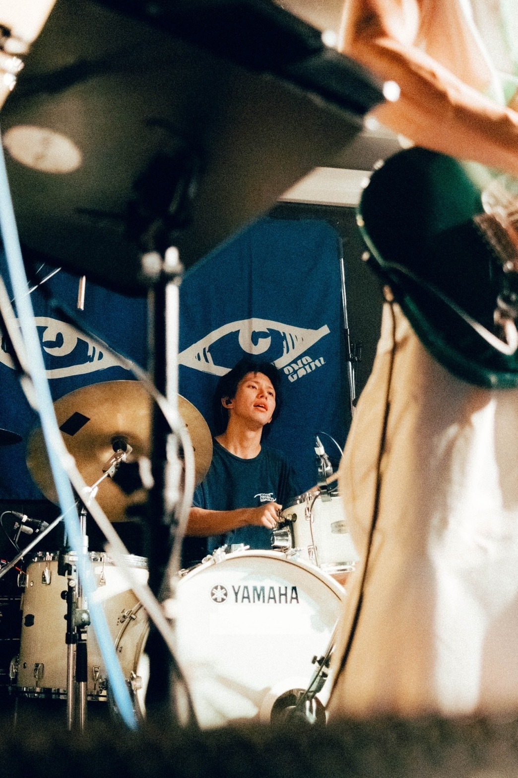ライブも後半に差し掛かり、ながたは「東京で出会った仲間を呼んで自主企画を始めました。この先も続けていけたら」とこの企画の発端を話す。このタイミングでDNA GAINZに自主企画が必要だった理由とは、先刻の「巣ニナル」で宣言されたように東京に巣を作っていくためであると同時に、この数カ月で築いた相思相愛の関係を噛み締めるためだったのではないか。パイプオルガンをイメージさせる荘厳なイタガキタツヤ(Gt)のギターが印象的な「ラフラブ」は、<今ここにいる人たちへのフィーリング 何が伝わる何で伝える>と不可視の愛や歓喜を身体的な踊りを通じて獲得せんとした試みであり、それはこのイベントが誕生したバックグラウンドとも重なる。彼らが提唱し続けてきた踊りとは、心が弾んだ際に思わず飛び出してしまったスキップやついつい歌ってしまった鼻歌みたいな、ハッピーを体現するための原初的な行為であるが、私たちが踊るためには好きだと思える人たちと生活を謳歌しなくてはならない。「俺はここにいる」と証明するために自らに指を突き立てたながたをはじめ、思い思いの風姿で舞台を踏みしめる4人は、そんなバンドのメッセージを佇まいから背負っていた。