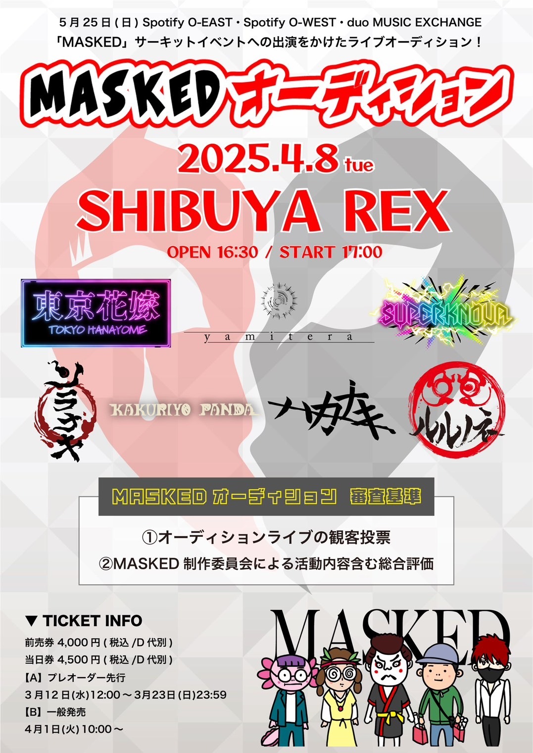 オーディションでは、2組のアーティストが『MASKED』サーキットイベントへの出演権を獲得。選考は、会場での「観客による投票」と「MASKED制作委員会による総合評価」に基づいて行われる。SNSでの反応も評価に加味されるため、ライブだけでなく、オンラインでの盛り上がりにも注目が集まる。