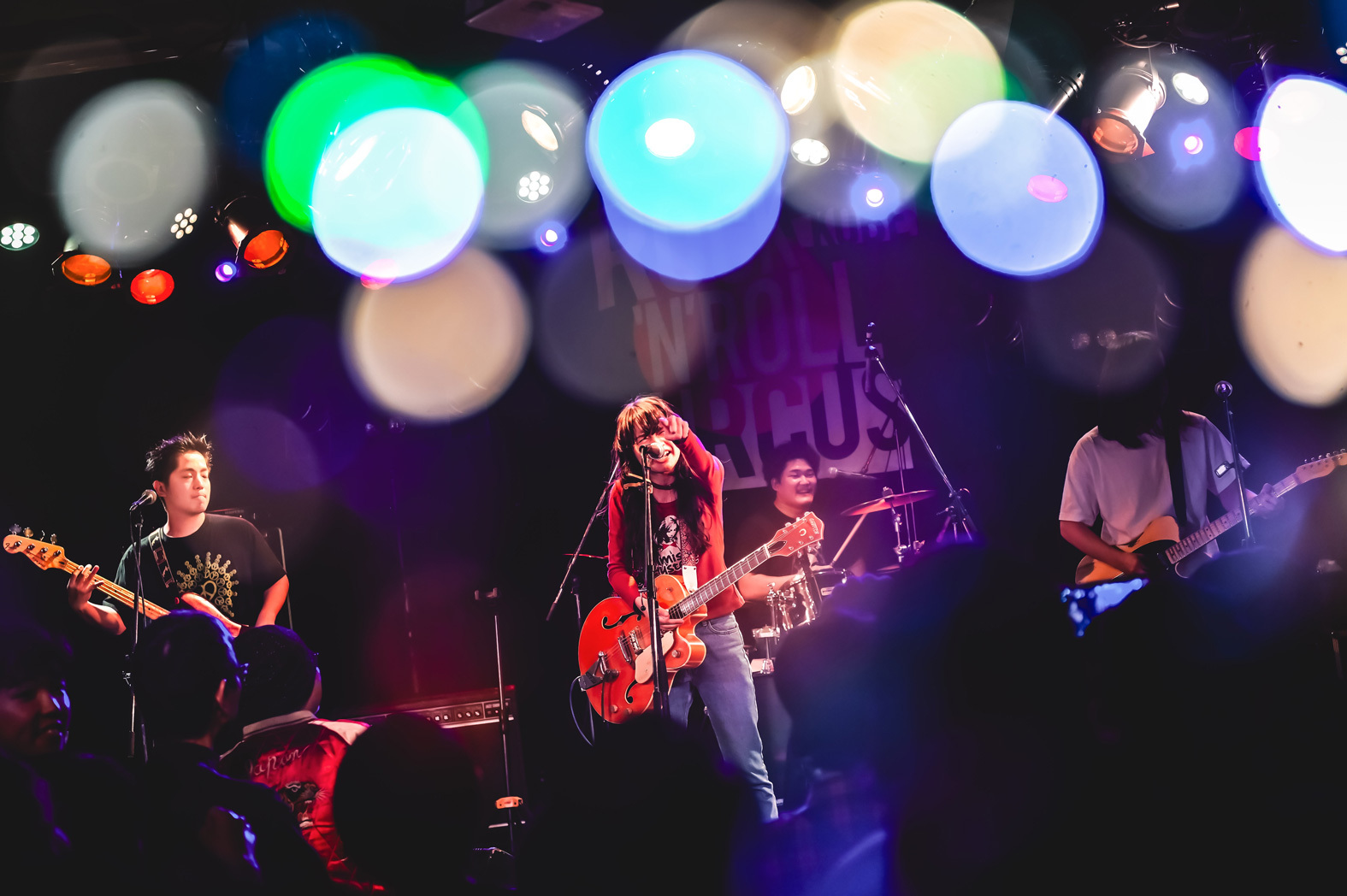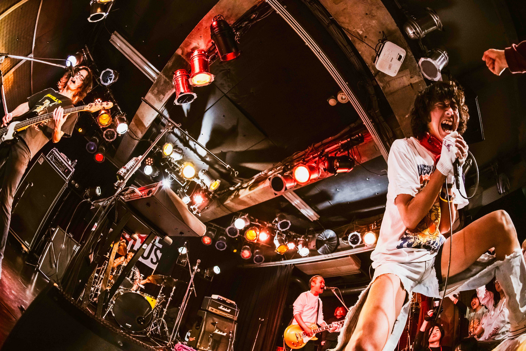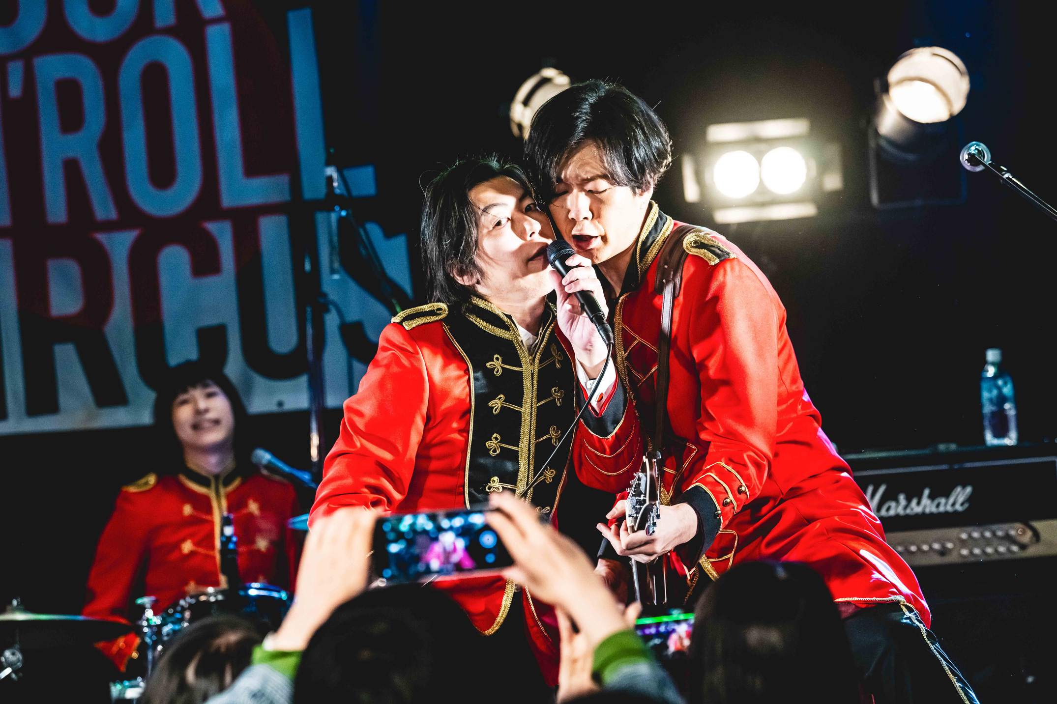 赤いくらげでは「名無しちゃん」で白目をひん剝きながら、ヒリヒリしたサウンドとアンファンテリブルな歌唱で釘付けになったし、ムステインズでは「バナナベイベー」でギターがかき鳴らされるたびに歓声が沸き起こる瞬間に心奪われた。『ロックンロールサーカス』のバックドロップ幕を背負いながらステージに立つ、その気負いがビシバシと伝わってくるのもとてもいい。