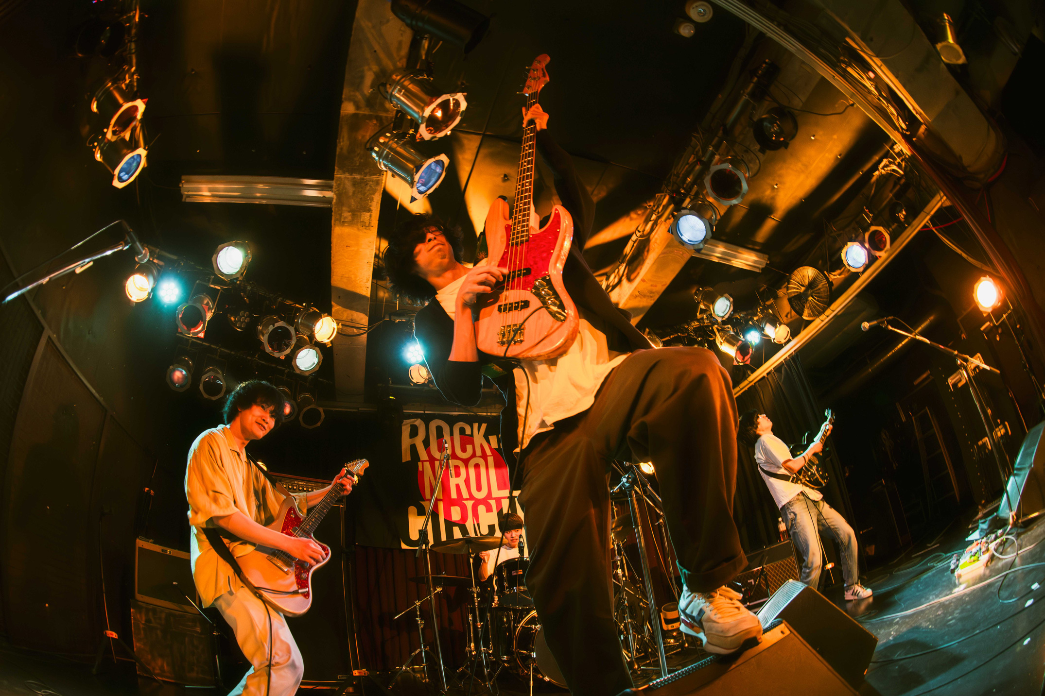 今回のレポートにあたり、南出氏からは「お好きなように観てもらえたら」と言葉をもらっていたが、SNSで『ロックンロールサーカス』の情報が連日発信されるなか、気になるアーティストをいくつか事前にチェックしていた。そのうちのひとつが京都で活躍する4人組バンド・水平線だ。「ちゃんとロックンロールしてるんです!」の南出氏の言葉通り、「トーチソング」「ロールオヴァー」など、素朴だけど心に確かな軌跡を残すサウンドがとてもいい。普段なら出会う機会がないかもしれない、そんな新しいバンドとの出会いが見つかるのもサーキット型ライブイベントの良いところ。