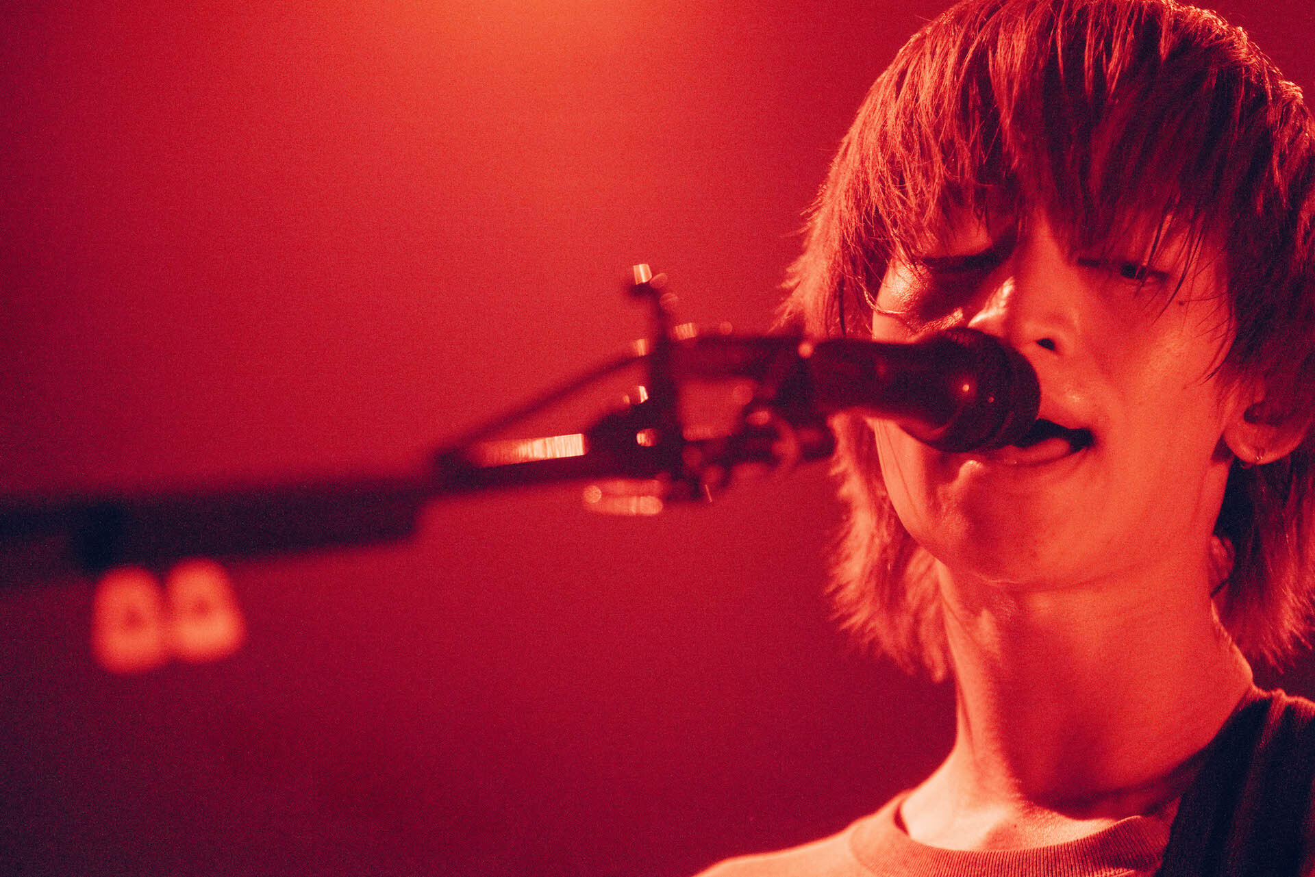 2度目の「星とオレンジ」や4度目の「包まれる」、「またライブハウスで会おうよ。バイバイ!」と約束を交わした「後日談」で毛ほどの隙も与えずにゴールテープを切る。かと思いきや、「後日談」の最後の一撃と共に「好きになってごめんなさい」が鳴らされた。鮮血の赤で埋め尽くされた会場に漂う熱気を、3人の重厚感溢れる演奏がじんわりと浸透させていく。<俺は夢を夢見てた><俺は恋に恋してた>としたためていた彼らは、自らの手で夢を見つけ、その理想を掴み、周囲へと愛を手渡せるようになったのだ。アンコールでは、数遊びを散りばめながらオーディエンスへの思いを綴る新曲「身体一つ、恐怖断つ。」を披露し、「歌種」を叩きこんでゴールテープを切ったammo。音止めは21時半過ぎ。当初予定していた120分を優に超えるフルボリュームの自己最長ワンマンで、ここまで抱え込んできた感謝を存分に伝えきった。