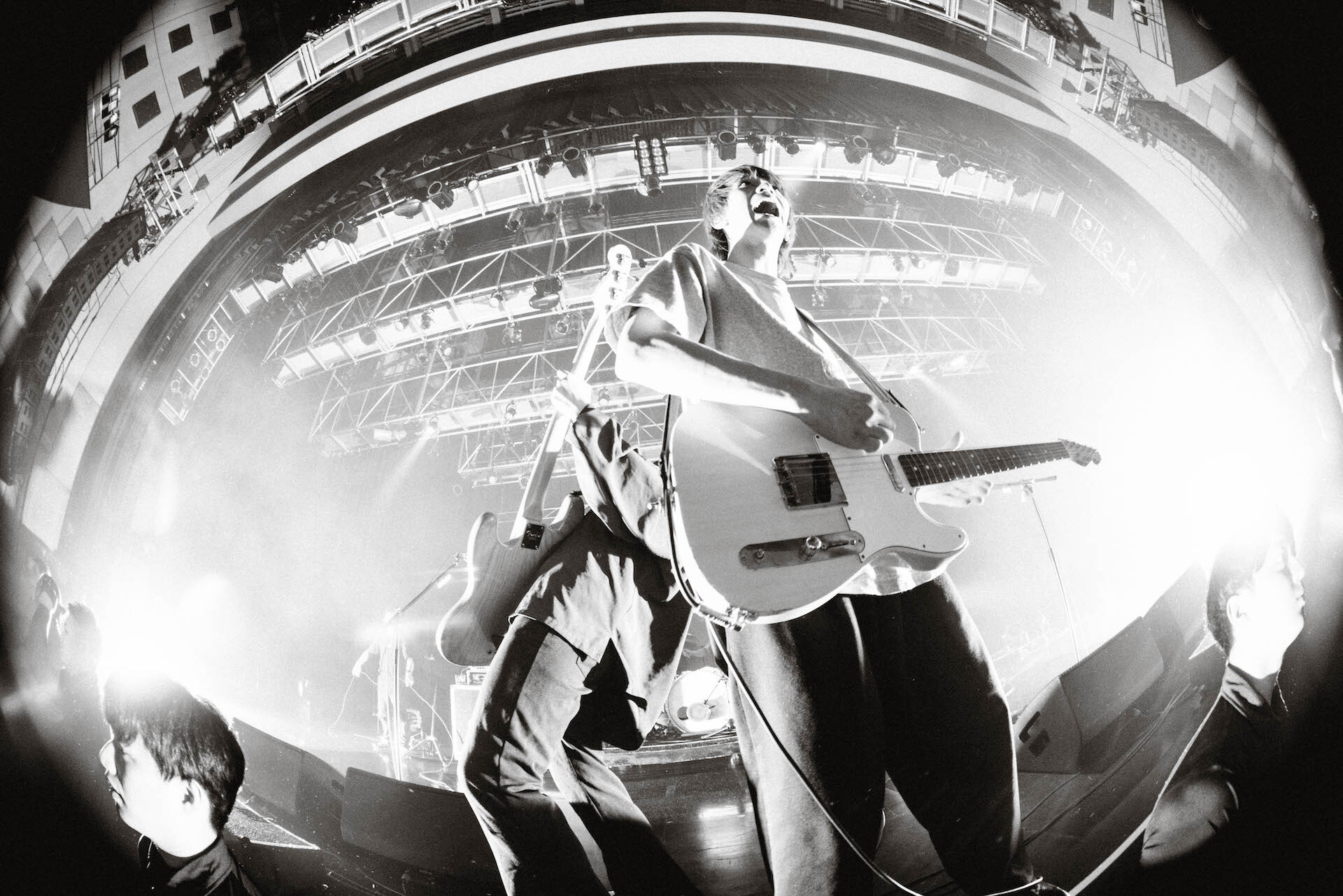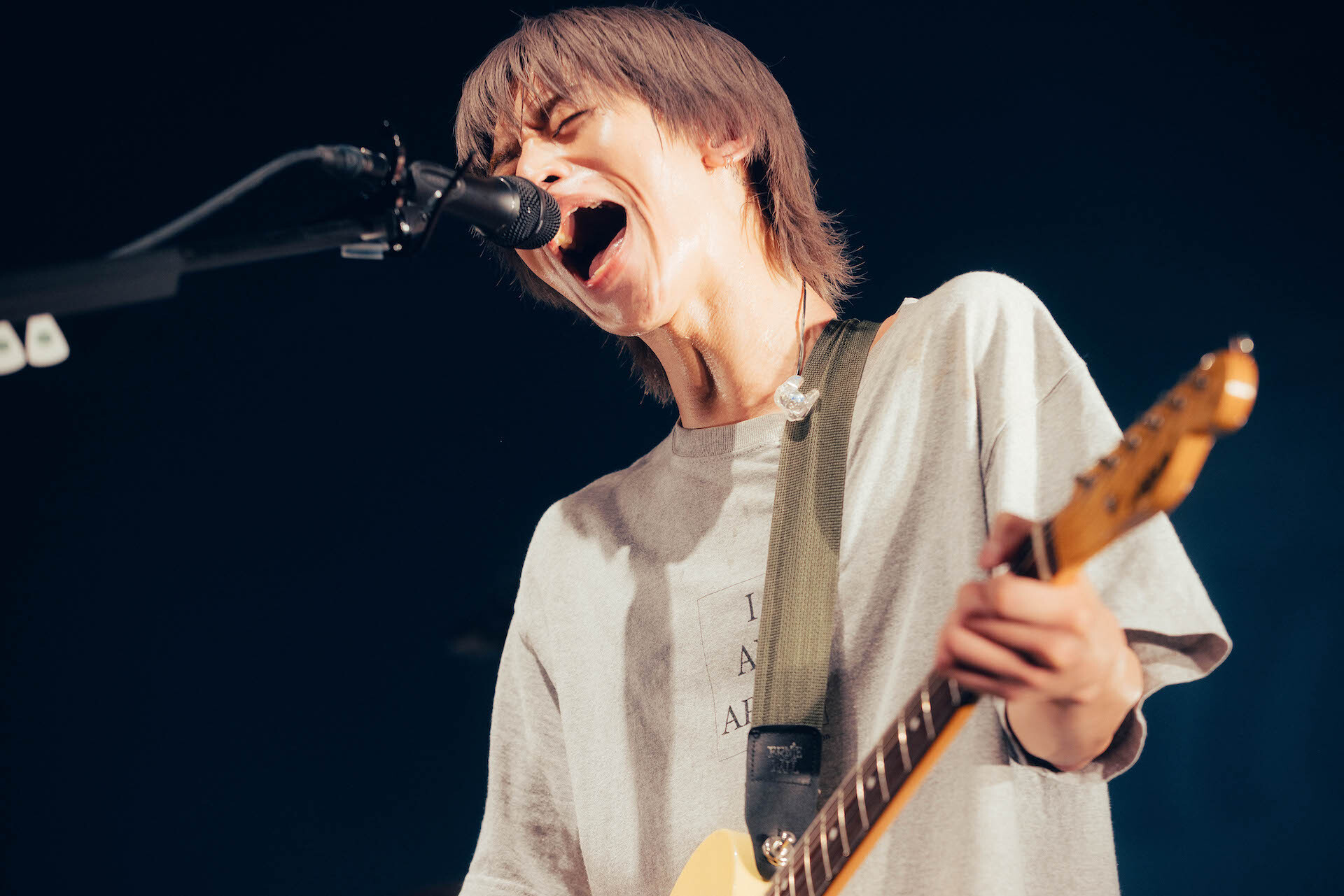 「なんばHatchまだまだいけるかい。後半戦始めようぜ!」とセンチメンタルな時間に手を振れば、「深爪」から「突風」「包まれる」「卒業」とアッパーチューンの連打で容赦なし。ダメ押しに2度の「包まれる」を追加すると、岡本は「ロックバンドはステージの上だけで格好付いてたら、それで良いって本気で思ってた。馬鹿がよ。俺たちが輝いていられるのは、目の前にいるみんながいるからです。今日が『Don’t Cry No Tour』ツアークライマックス編。これまでのどうしようもなかった俺たちを殺しにきました」と叫び「フロントライン」を投下する。<過去があるから今日の自分が なんて言ったって あれから何も変わっちゃいないし>と幾度も歌い続けてきた3人が今この瞬間、素直に真っ直ぐに生まれ変わろうとしていく。「感謝してます」と照れくささや些細なプライドで言えなかったことをストレートにぶちまけられたキッカケは、彼らがこのツアーで自らのロックバンド像とぶつかったからに違いない。