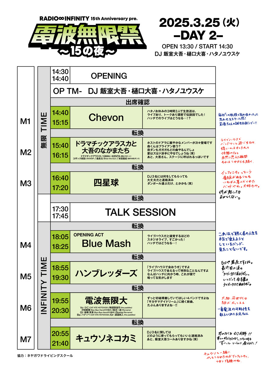 タイムテーブルの発表と合わせて、歴代『RADIO∞INFINITY』DJの手書きコメントも公開されたのであわせてチェックしてほしい。