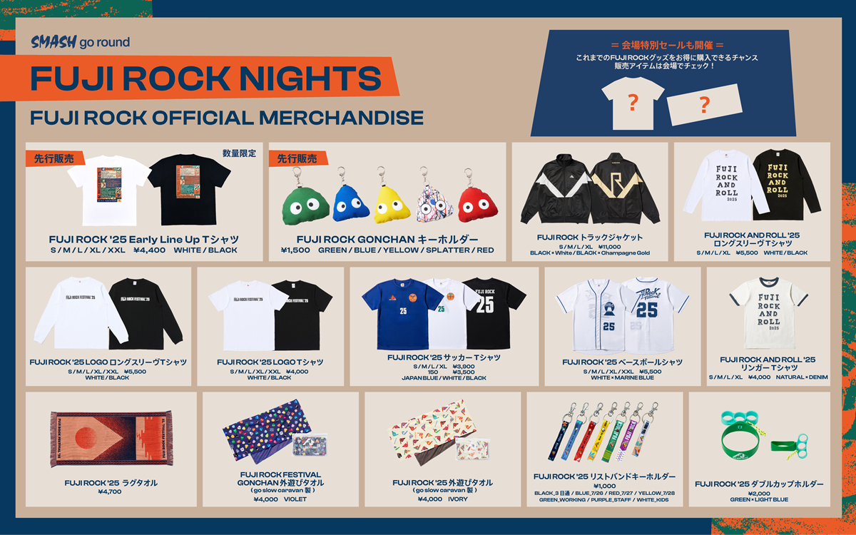 さらに、当日会場では『フジロック’25』オフィシャルグッズの先行販売も決定。「FUJI ROCK ’25 Early Line Up Tシャツ」「FUJI ROCK GONCHAN キーホルダー」など人気のグッズをいち早くゲットできるチャンスだ。また会場特別セールも開催される。