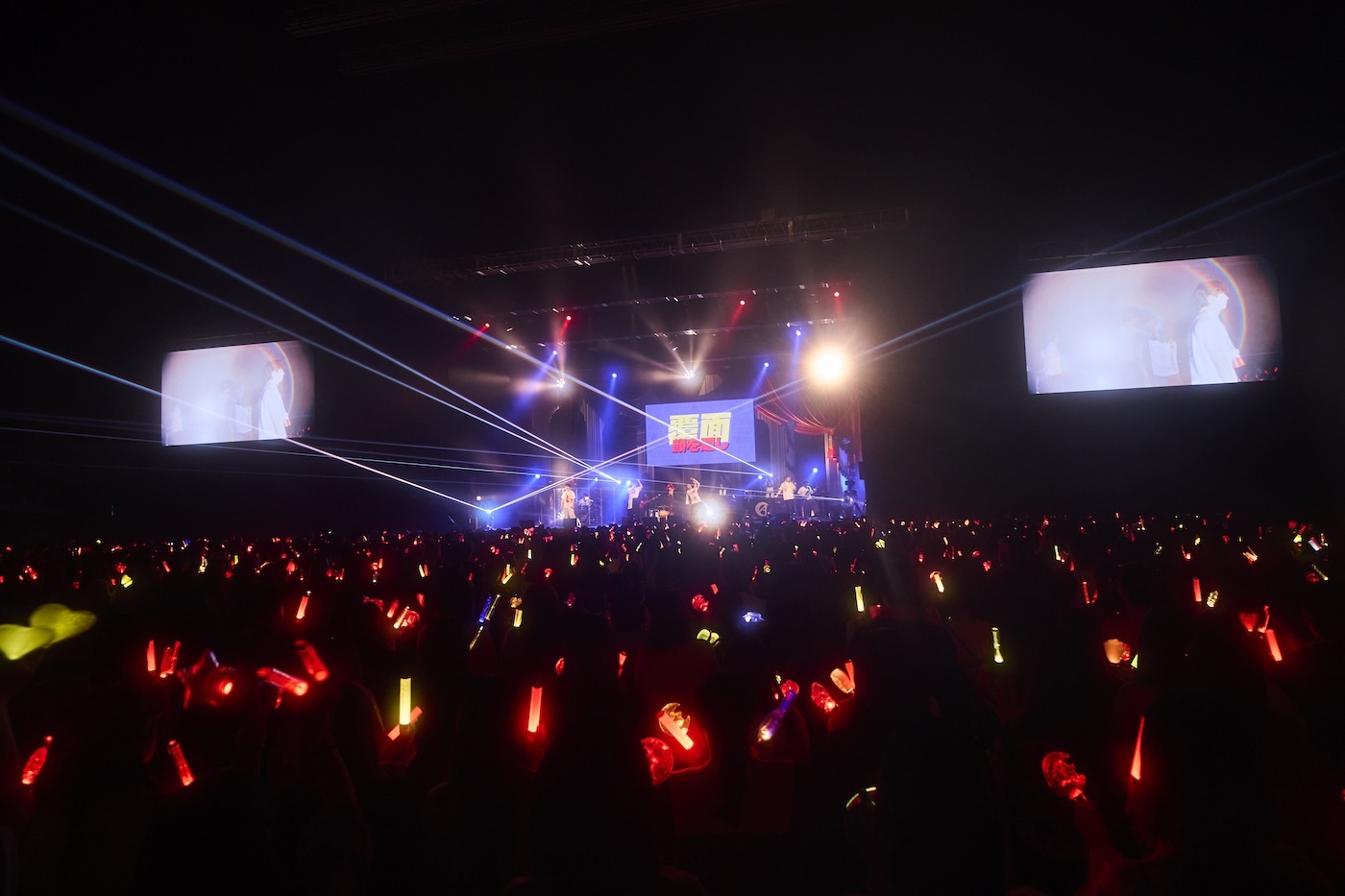 ステージで二人だけで歌うのはこれが初めて。記憶を目と耳に焼き付けるためにもう1曲、「スターマイン」はお祭りビートにカラフルな花火の映像を添えて、ステージの左右いっぱいに広がって煽る二人。そして、センラを送り出しても勢いは止まらない、「プロポーズ」では今日イチのド迫力ボイスで激しいシャウトを決める天月。かっこよさを超えて怖さすら感じる、これが歌い手・天月の底力。