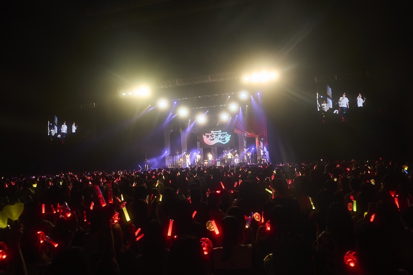 お楽しみはまだ終わらない。今日のライブを盛り上げたスペシャルゲスト、少年T、センラ、超学生を呼び込み、3人揃ってのタイトルコールで披露したのは「パーペキヒーロー」。歌い手大集合のヒーローアンセムを今夜は4人で、♪かませ、かませとぐいぐい飛ばし、ラストは全員揃って大ジャンプ。君がいるから僕は歌える、天月のメッセージは明確でブレがない。