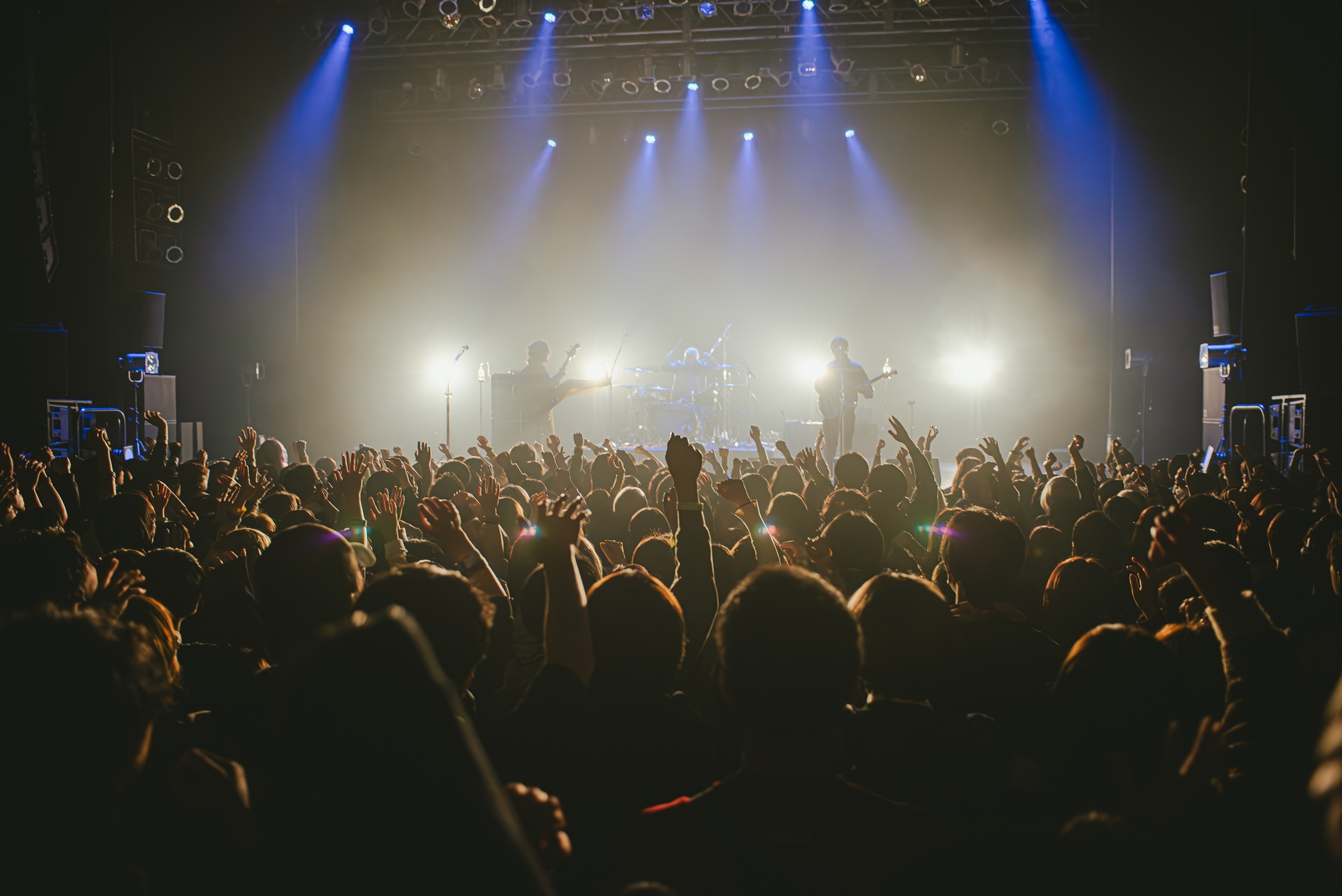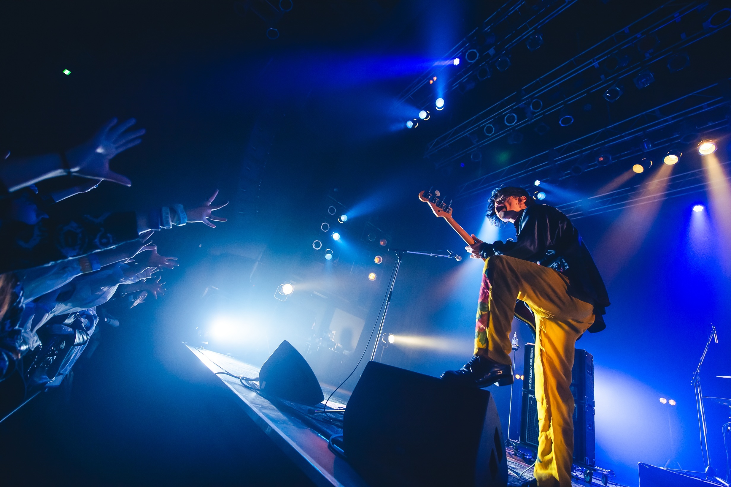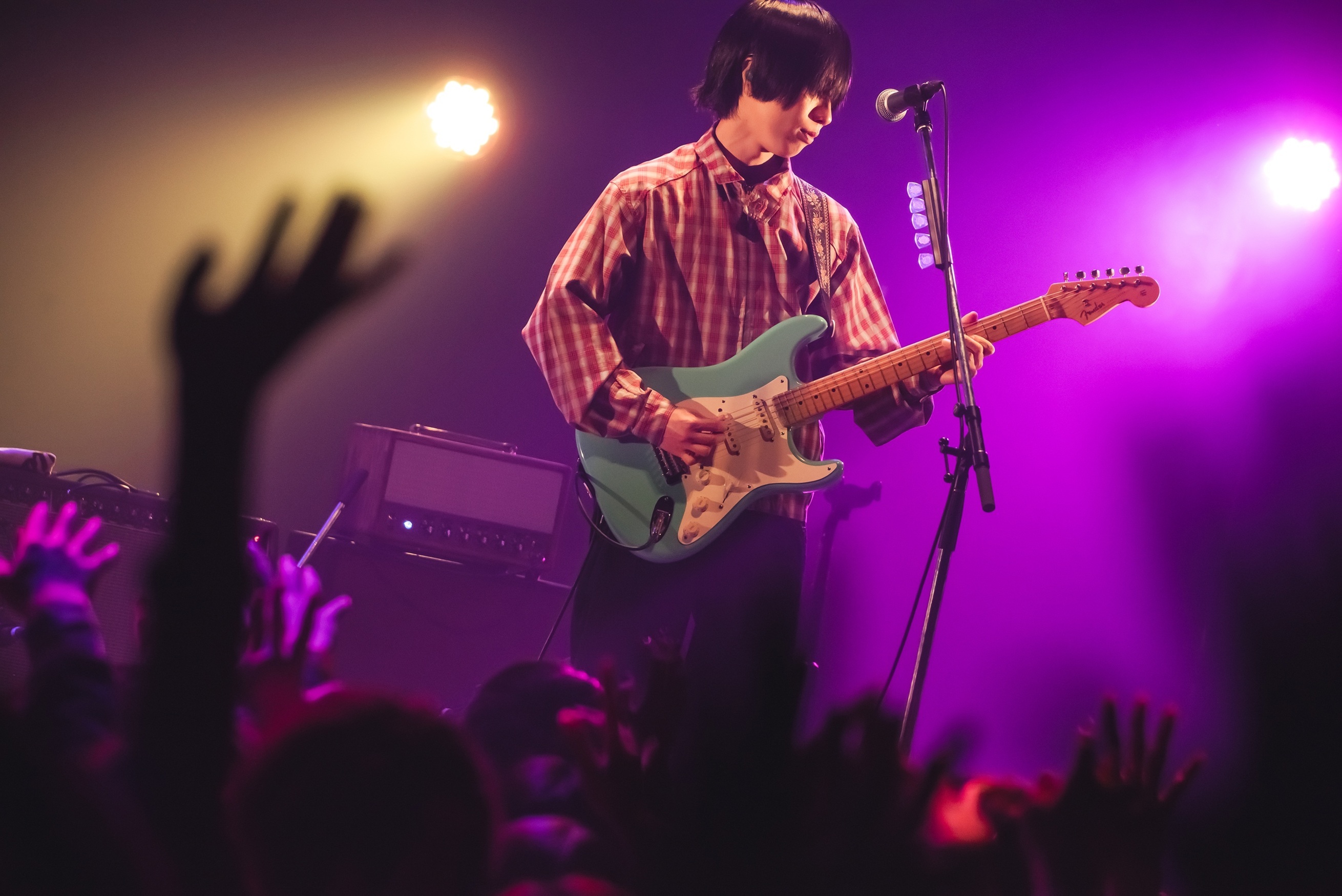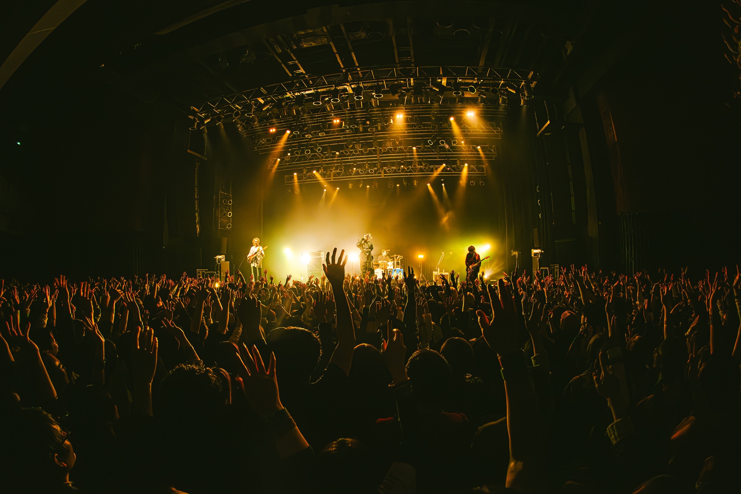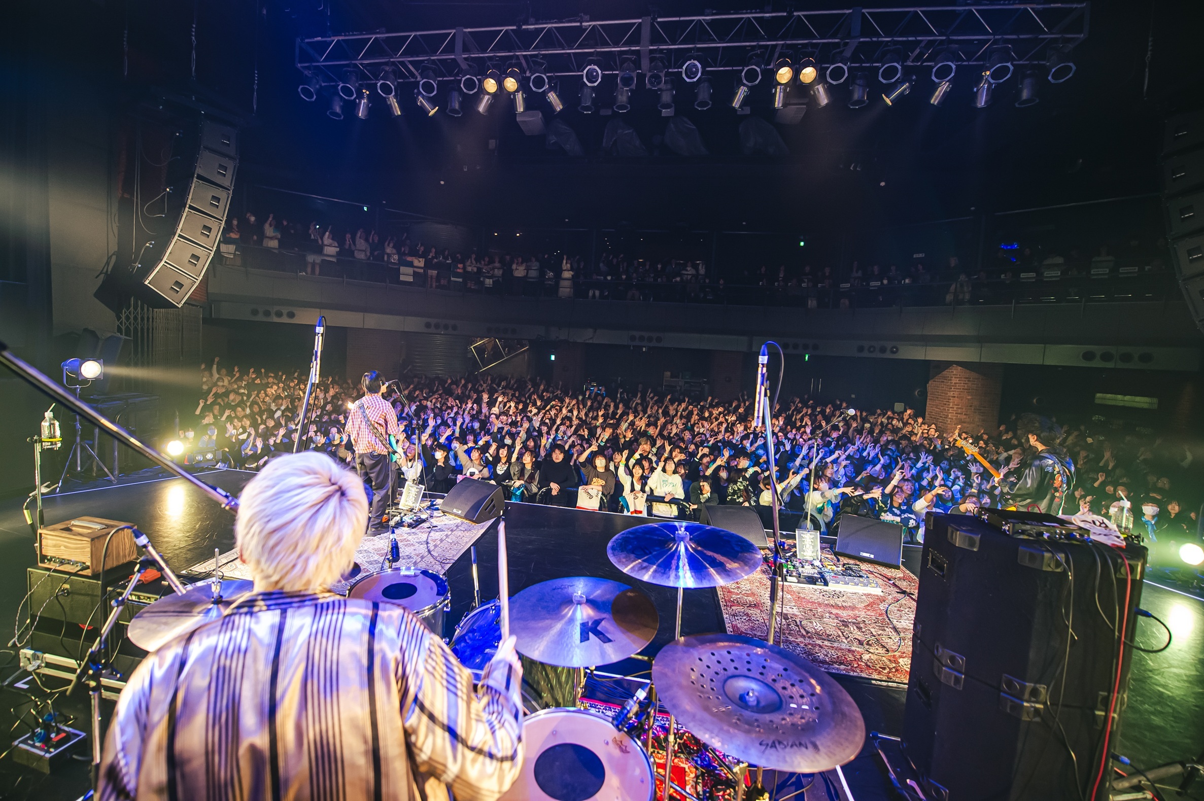 2度目のMCでは原がツアータイトルに触れて「もちろん僕らは……ごはん派!」と場を和ませる一幕も。その後、ライブを再開させるも彼らが演奏を始めたのは、なんとChevonの「冥冥」カバー。ナカシマが「冥冥」の印象的なフレーズを歌い始めると、フロアからは驚きと喜びの声が鳴り響き、シンガロングでバンドの熱演に華を添える。この曲を1コーラス演奏し終えると、バンドはそのまま「フランネル」へつなげ、その熱量を一気に上昇させ、歯切れの良いギターリフ&ビートの「dry flower」で会場の一体感を強めると、ライブはクライマックスへと近づいていく。