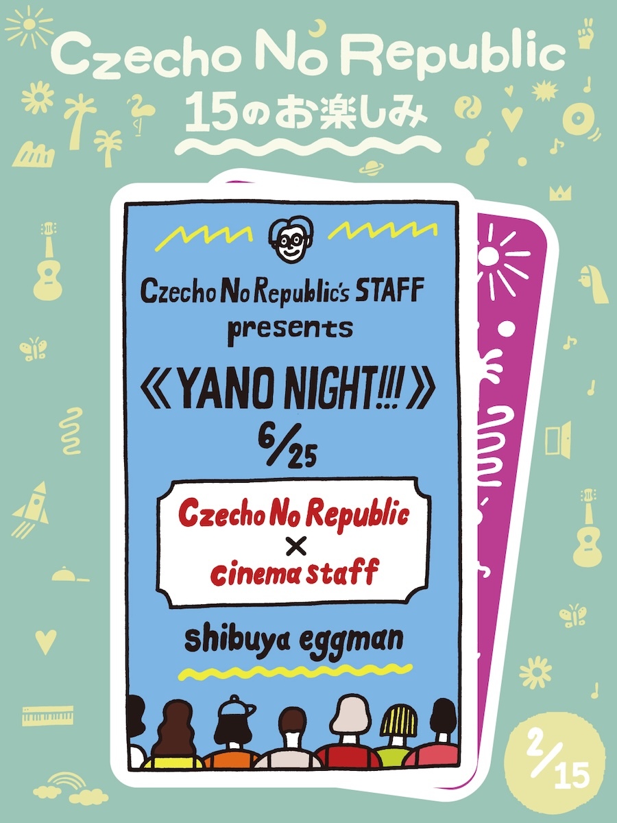 6月25日(水)にバンドのホームである東京・shibuya eggmanにて『Czecho No Republic’s STAFF presents《YANO NIGHT!!!》』と銘打った企画を開催。このイベントは、現Czecho No Republic・元cinema staffのスタッフ矢野が両者の共演を熱望し、実現したものとなる。