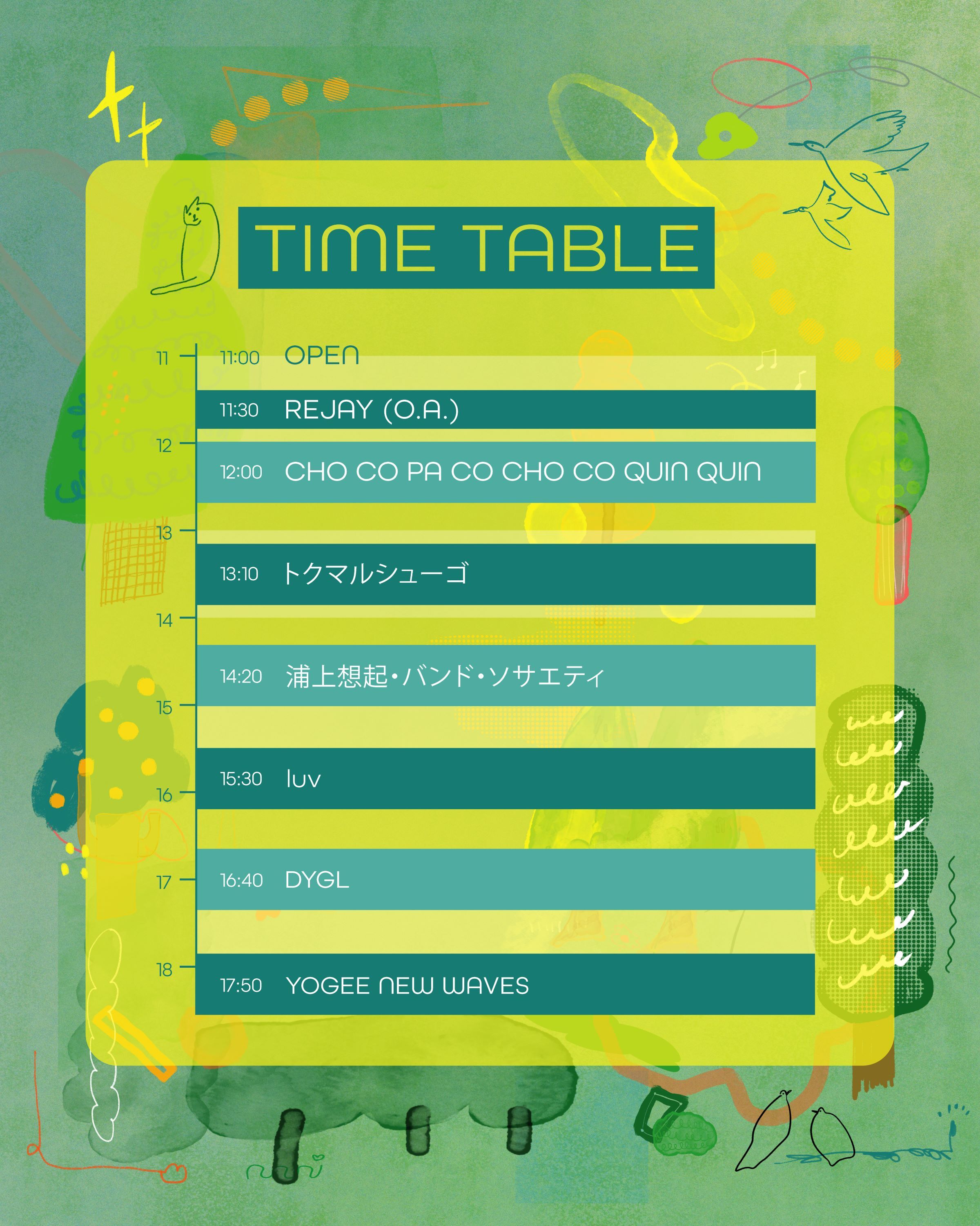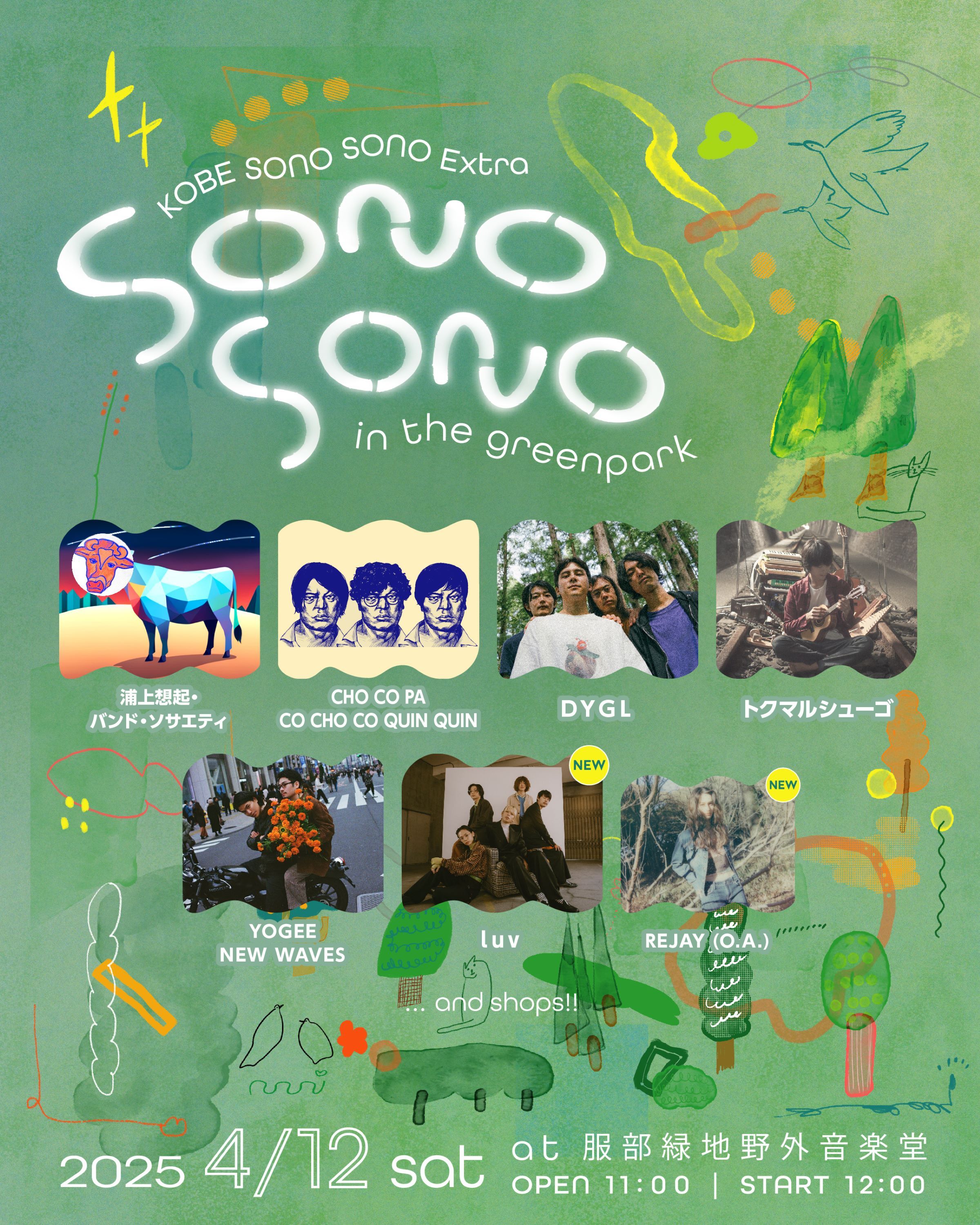 4⽉12⽇(⼟)、大阪・服部緑地野外⾳楽堂にて開催される『SONO SONO in the greenpark』のタイムテーブルと追加出演者にluv、REJAY (O.A.)の2組が発表された。