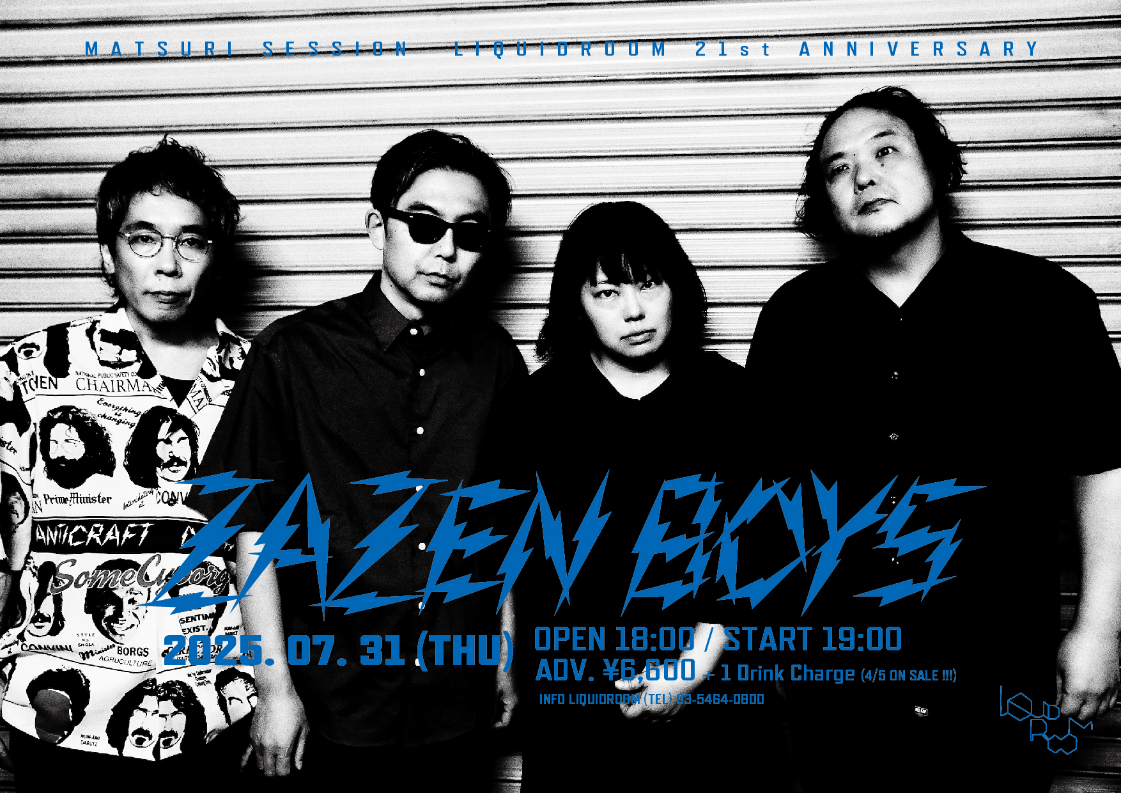 ZAZEN BOYSのワンマンライブ『MATSURI SESSION LIQUIDROOM 21st ANNIVERSARY ZAZEN BOYS』が7月31日(木)に東京・LIQUIDROOMで開催されることがわかった。
