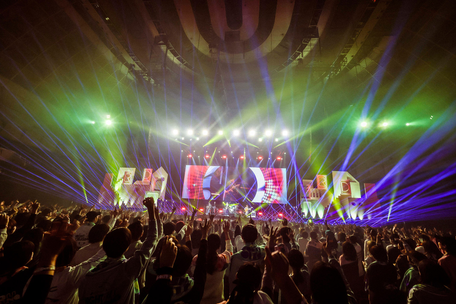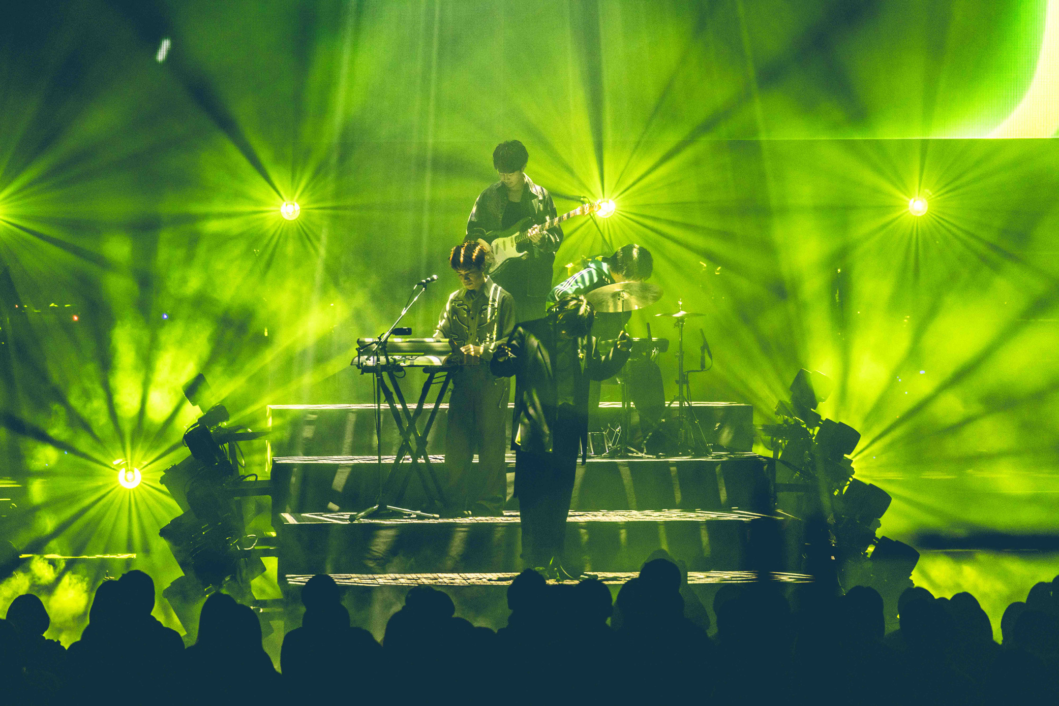 7年前の光景も忘れられないが、最高を更新し続け「TOGENKYO」。「自分の幸せは自分で勝ち取ってください」と歌われた「Happiness」を経て、武の合図で 「FRDC Remix」が始まると、ワッと歓声が沸く。甘酸っぱい「ひとときのラズベリー」から、いつの間にかメンバーはステージ中央の花道に。康司はシンセを奏で、4人が縦に並ぶシルエットがクールで見惚れてしまった。「ナイトステップ」「midnight creative drive」、そして「LIGHT」「熱帯夜」とシームレスに繋がれると、心地いい重低音に身を任せて自由に踊るオーディエンス。