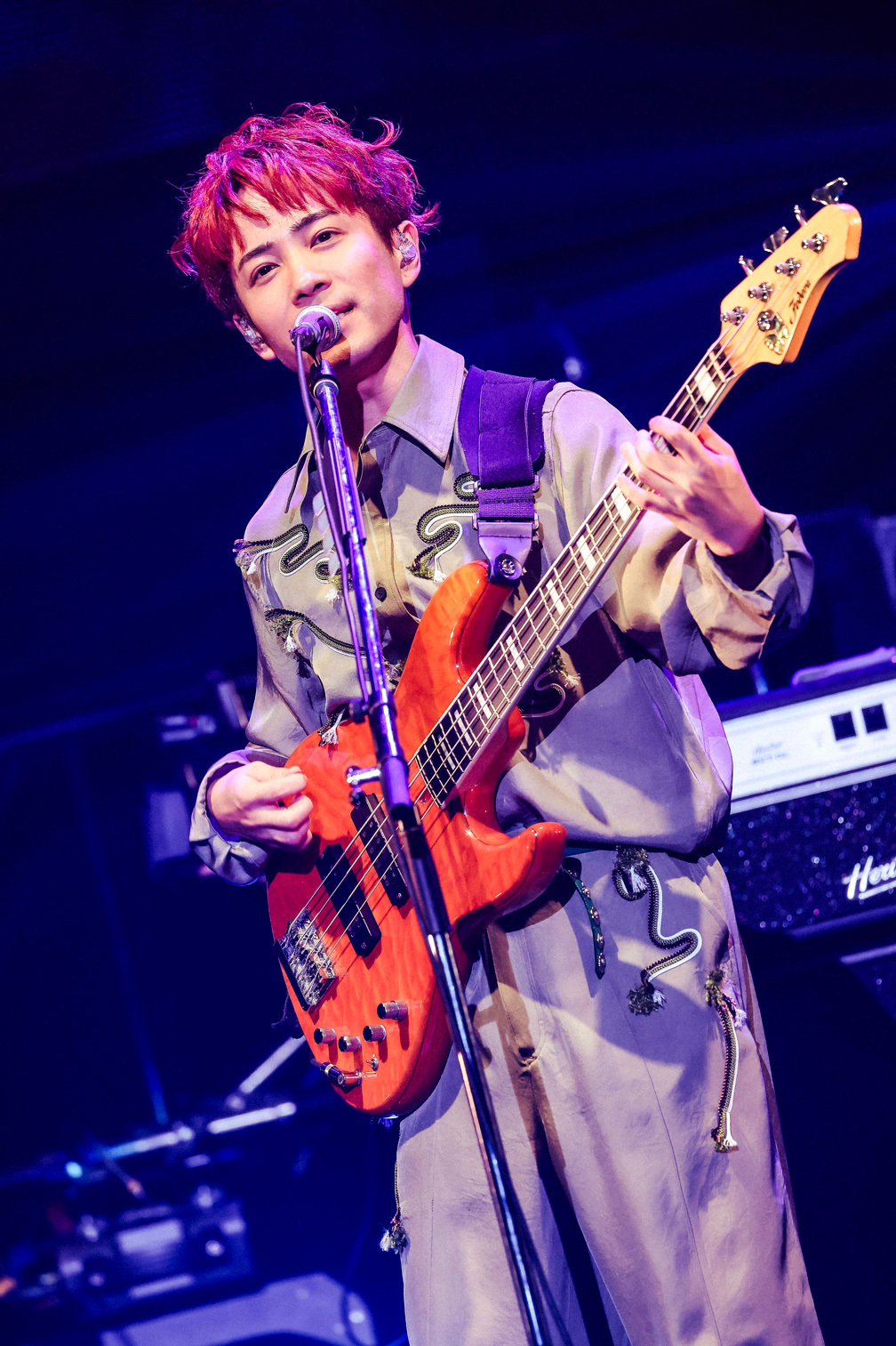 「7年前に新曲として出した曲をここでやります。こんなに愛される曲になりました!」と隆児の小気味いいギターから「シンセンス」。そして「銀河の果てに連れ去って!」を畳みかけ、あっという間にラストスパートへ。1曲1曲を噛み締めるように聴き耽っていても、無我夢中だとこんなにも時が過ぎるのは早いのか。なんて感傷に浸っていたら、まだまだ興奮を突き上げんと言わんばかりに「ジャンキー」になだれ込む。クラップ&手を振り、飛んで踊るオーディエンス。最後は、ミニアルバム『CITRUS CURIO CITY』から「あなたの歌です。自分の声で、自分の人生に問いかけてください」と「煌舟」を披露。