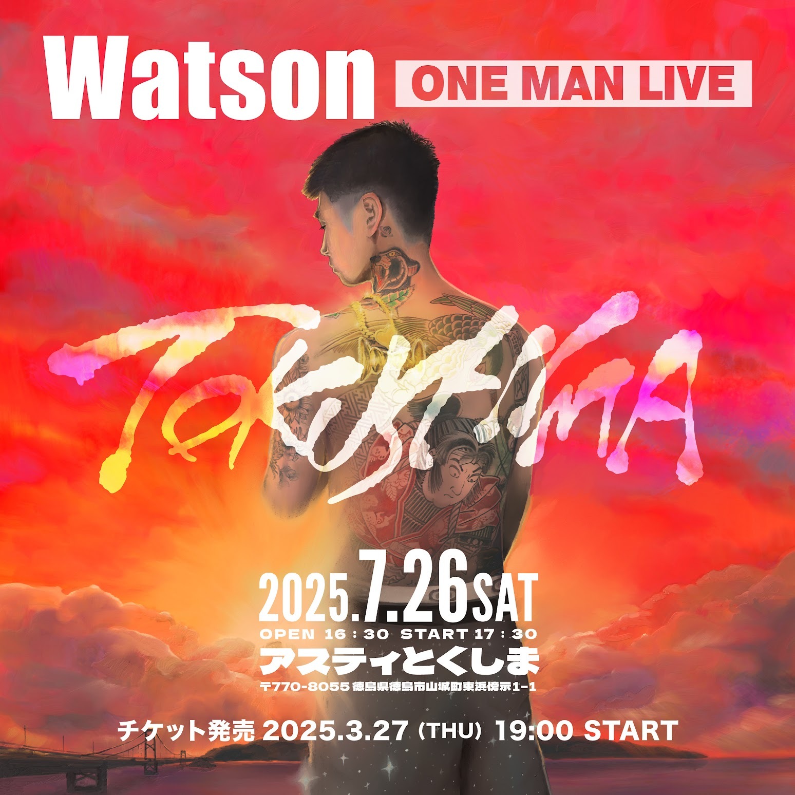 徳島出身のラッパー・Watsonが、2025年7月26日(土)に徳島最大級のアリーナ・アスティとくしまでの単独公演『Watson ONE MAN LIVE“TOKUSHIMA”』の開催することを発表した。