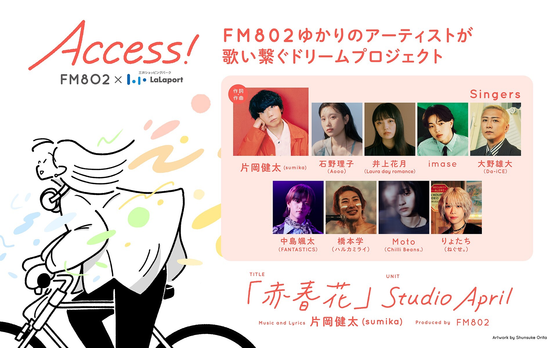 同キャンペーンは、新生活を迎えたり出会いや別れの多い春に、FM802とゆかりあるアーティストが多数参加し、オリジナル・キャンペーンソングを制作するドリームプロジェクト。2025年版のタイトルは「赤春花」とし、片岡健太(sumika)が作詞作曲を担当。参加するシンガーは、片岡健太(sumika)を始め、石野理子(Aooo)、井上花月(Laura day romance)、imase、大野雄大(Da-iCE)、中島颯太(FANTASTICS)、橋本学(ハルカミライ)、Moto(Chilli Beans.)、りょたち(ねぐせ。)の9名が、ユニット「Studio April」として発表された。
