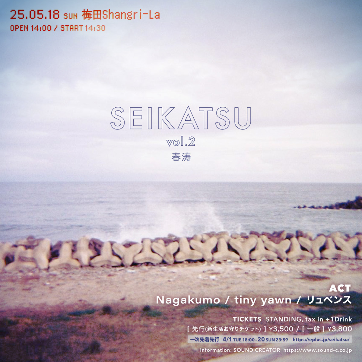 5月18日(日)に梅田Shangri-laにて、新生活を送る全ての人に向けたライブイベント『SEIKATSU vol.2』が開催される。