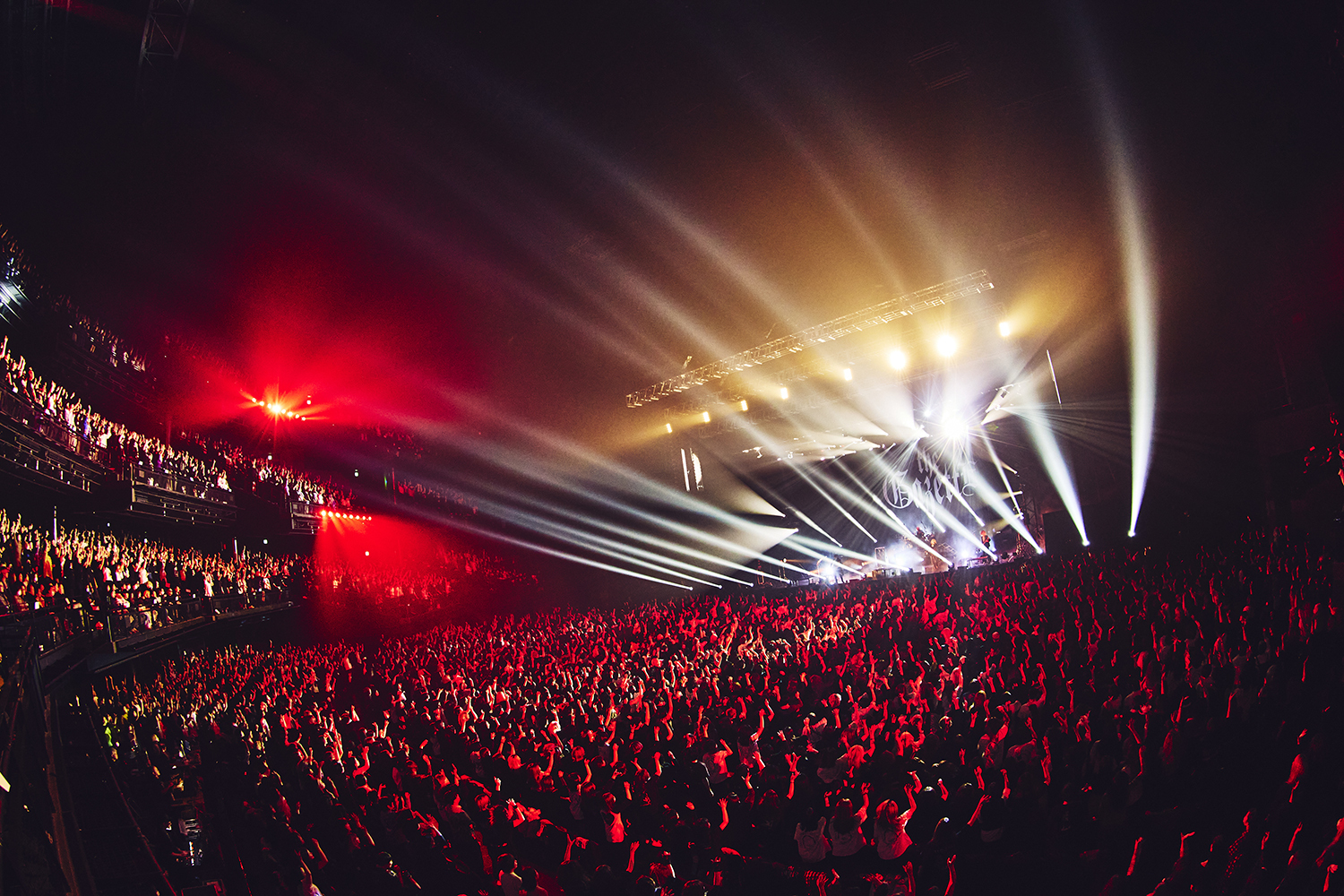 そして「赤いワンピース」に「LINDA ~candydive Pinky heaven~」と、初期から愛され続け、現在でもアンコールでしばしばお目見えするナンバーがオーディエンスを踊らせて、壮観な景色を作り上げる。後者ではベースフレーズが前に出る部分で、しっかりアンプにライトが。皆、激しく身体を振って、この曲で誰よりも躍動していたREITAへのリスペクトを表していく。「東京! ラスト!」と贈られた「LAST SONG」では、5本の青いライトが客席に伸びて大きなクラップを招き、その大音量を受けてRUKIは懸命にファンへの愛を歌唱。“終わり”と“続く”という相反した意味を持つ単語を掲げた楽曲のクライマックス、銀テープが飛んで、彼は心からの想いを叫んだ。