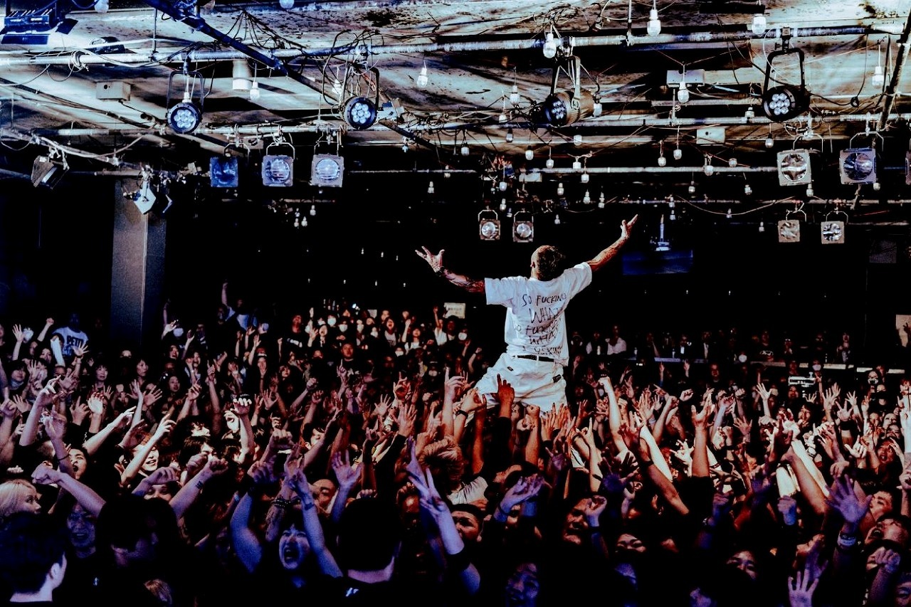 まだThe BONEZ の余熱が残る会場にyukihiro作のインダストリアルなインスト「move」が鳴り響くと、フロアは爆発的な歓声と熱気に包まれる。前回のツアーあたりからPetit Brabanconというバンドの本質を客が完全に理解し、バンドが望むライブのあり方に応えるようになったことは実感していたが、BONERたちをも巻き込んだ会場の雰囲気は早くも熱狂的だ。