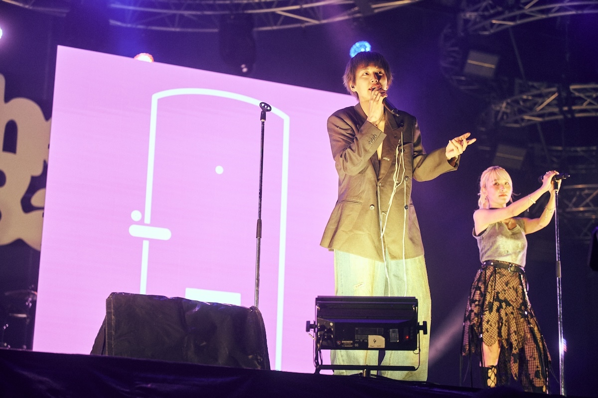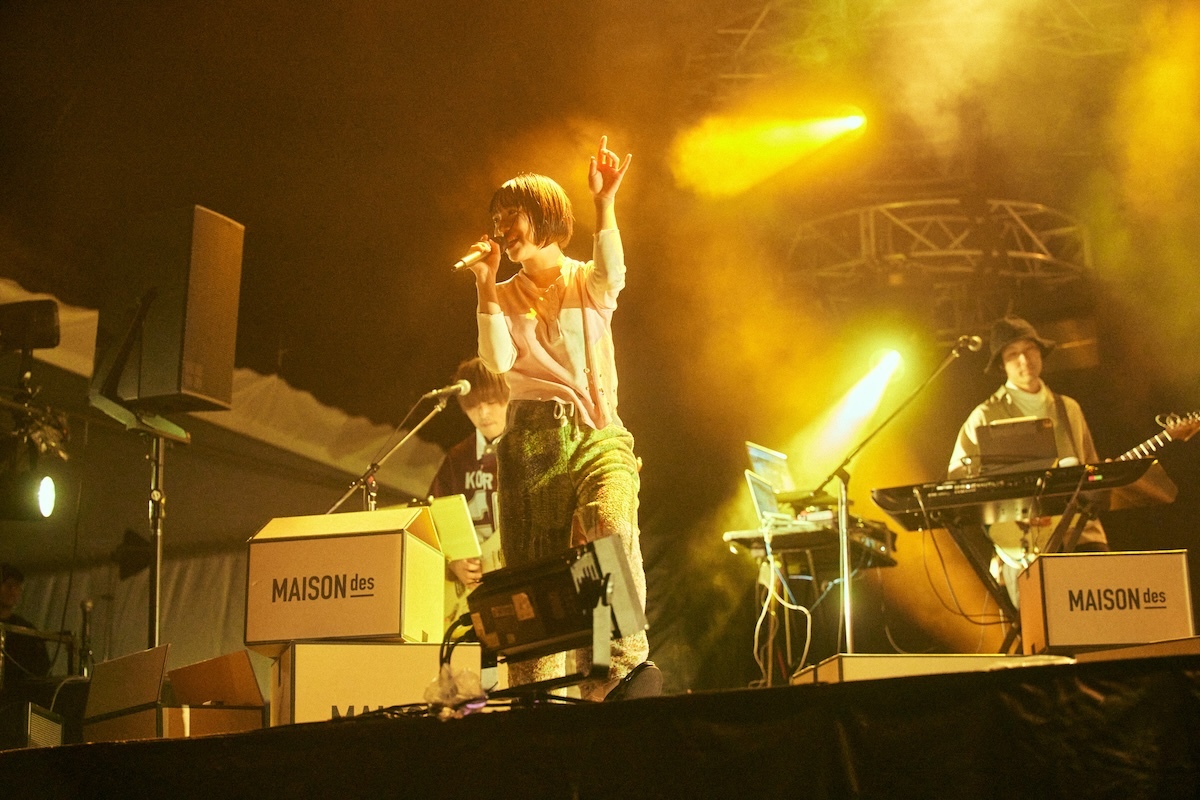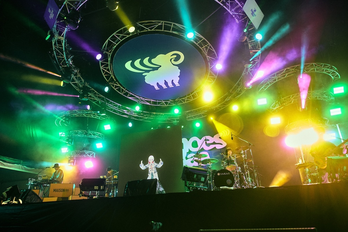 みきまりあ、れん、『ユイカ』、KAFUNÉがオーディエンスの熱を上げ、アユニ・D、くじらが自身の世界観に惹きこむと、煽りVTRで派手やかに登場したのは、少年サンデー&サンデーうぇぶりの漫画作品とのコラボが話題になっている、日曜日のメゾンデ。「モドキスキップ!」と新曲「ふり」の2曲を披露すると、ボーカル礼衣の歌唱力の高さに大きな拍手と歓声が起きた。ツミキがドラムを叩く生演奏に乗せて、バーチャルシンガーの花譜が歌った「トウキョウ・シャンディ・ランデヴ」に続き、最後に登場したのはasmi。「あ~、楽しかった!」と素直な感想を語り、「これはみんなの歌です」と披露した曲は「ヨワネハキ」。オーディエンスの歌声も響く中、MAISONdesのステージ、そして「Echoes Baa」初日を締めくくった。