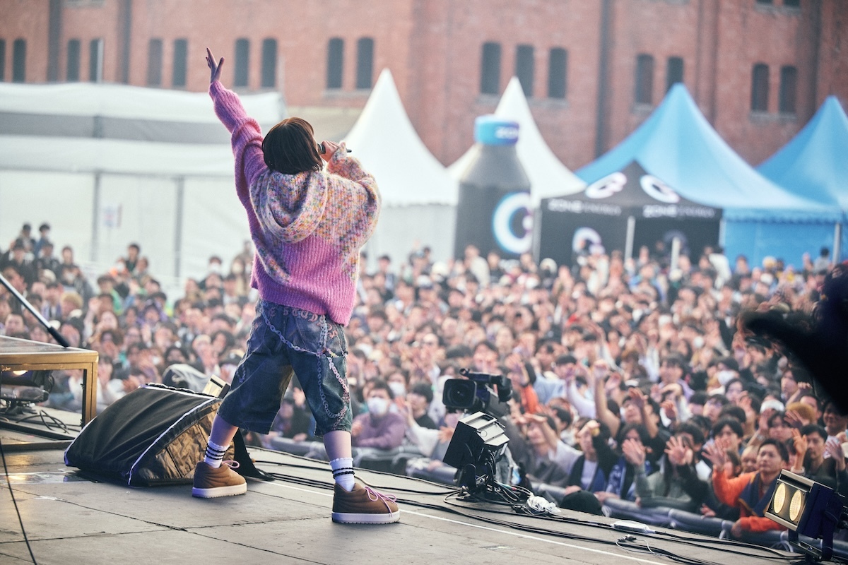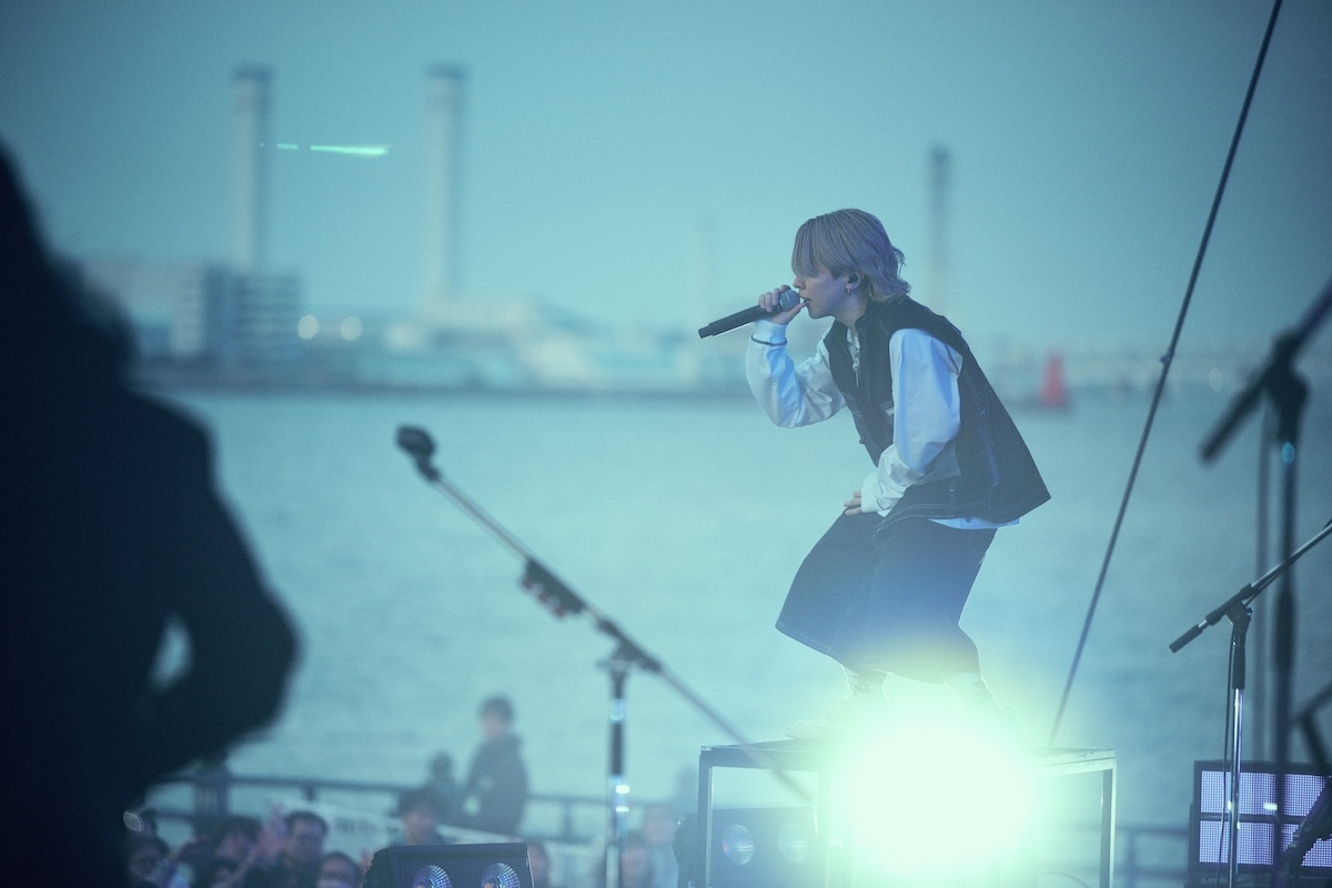 Reolはダンサー2人を引き連れ、ストリーミング1億再生超えをした代表曲「第六感」でライブスタート。<今が一番若いの>というフレーズの通り、今この時の歌唱が一番輝いて聴こえるのが素晴らしい。その後も勢いを緩めるどころか、「飛べるよ横浜! もっと飛べるよ!」と扇動して「煩悩遊戯」「十中八九」で観客の興奮を加速度的に高めていく。「みんなと歌いたいと思うんですね、一緒に歌えますか?」と声出しをレクチャーして「Boy」へ。ラストナンバーは「劣等上等」だ。会場全体がダンスフロアと化して、観客みんなが恍惚の表情を浮かべて音の渦に酔いしれた。