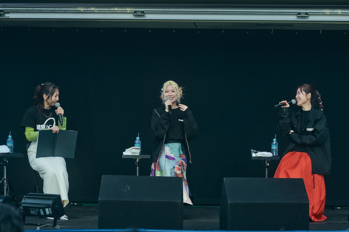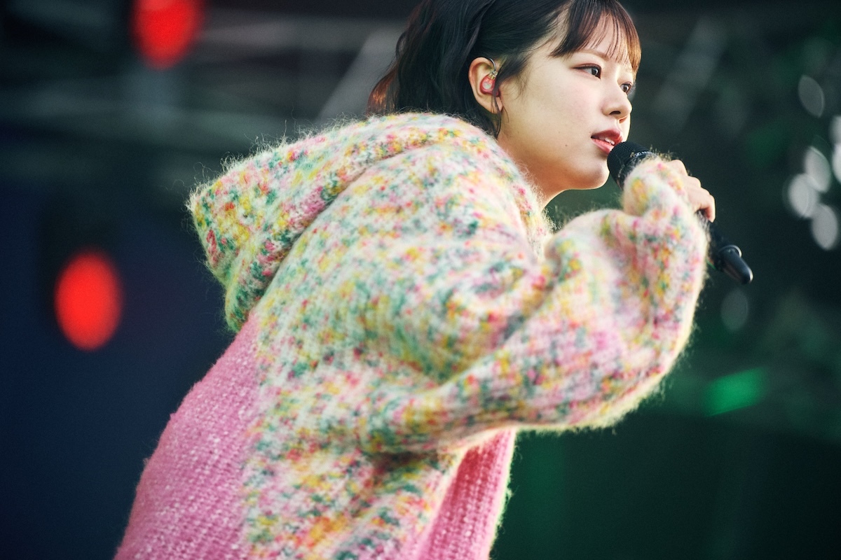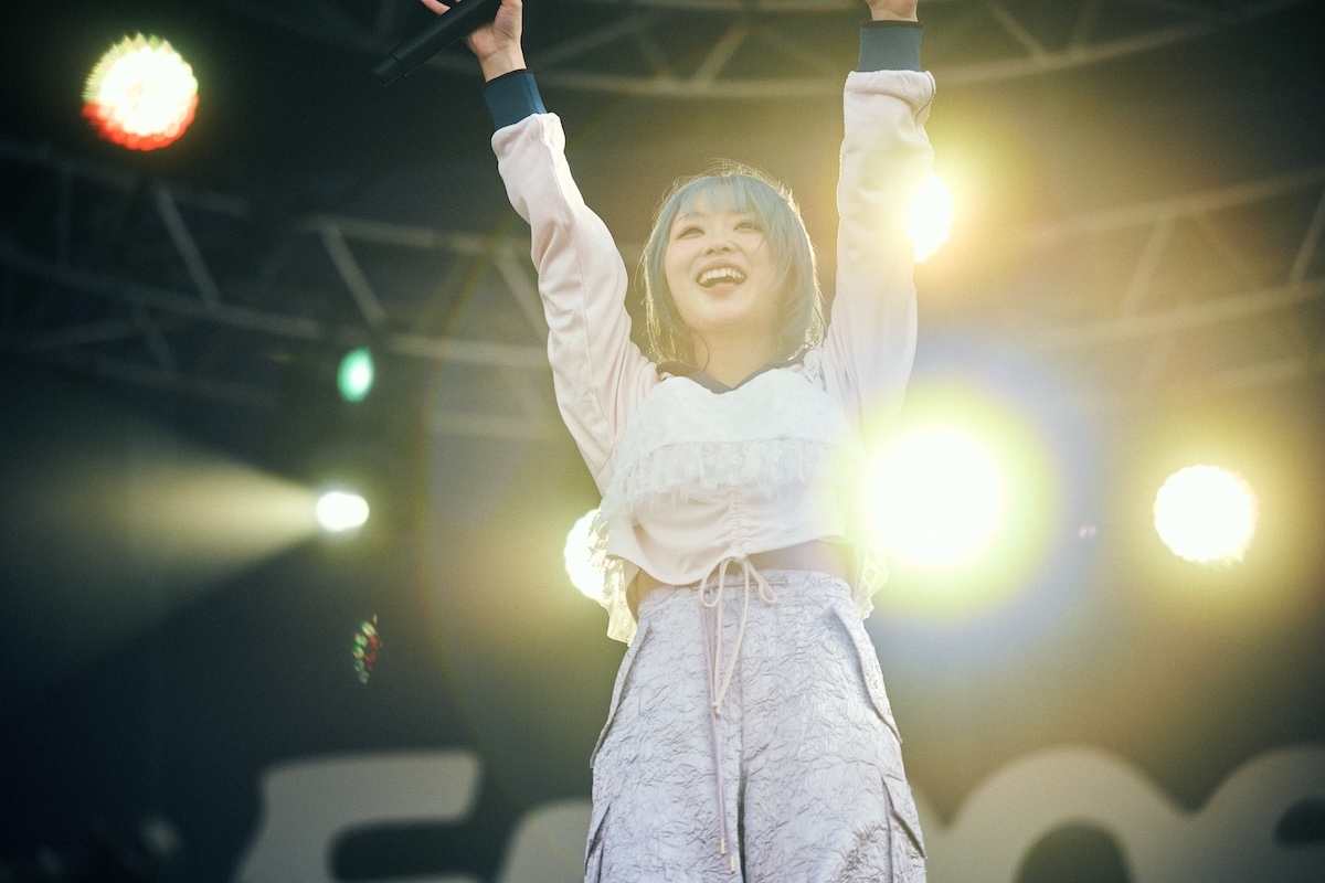 キュートな笑顔を振りまいて登場したasmiは、「ドキメキダイアリー」で明るく元気にライブをスタート。夕暮れに似合う、チルなサウンドの「memory」や感動的なバラード「例えば」といった楽曲で豊かな表現力と多面的な魅力を見せると、「な、なんと!今日は発表があります」と4月からレーベルがEchoes所属になったことを発表。ラストは「PAKU」で会場に集まった全員がSNSでバイラルした手振りで大盛り上がりを見せ、とびきりの笑顔でステージを締めくくった。