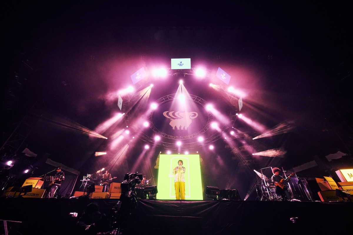 トップバッターは2024年に世界デビューを果たしたピアニスト・角野隼斗。誰もが知るラヴェルの「ボレロ」を角野隼斗のアレンジで奏で始めた。静謐な演奏は徐々に熱を帯びていった。自らも所属する6人組ツインリードヴォーカル・バンドPenthouseの浪岡真太郎と大島真帆を招き、Penthouseの楽曲「一難」と「恋におちたら」を披露。浪岡と大島の美しいボーカリゼーションと角野の流麗なピアノのハーモニーにオーディエンスは酔いしれた。角野が「実はもうひとりコラボしたい人がいます」と言って、この日のトリを務めるキタニタツヤが登場。実は大学の同級生同士の二人。角野がピアノアレンジしたキタニの「Moonthief」と「ユーモア」を披露するというスペシャルなコラボを展開した。