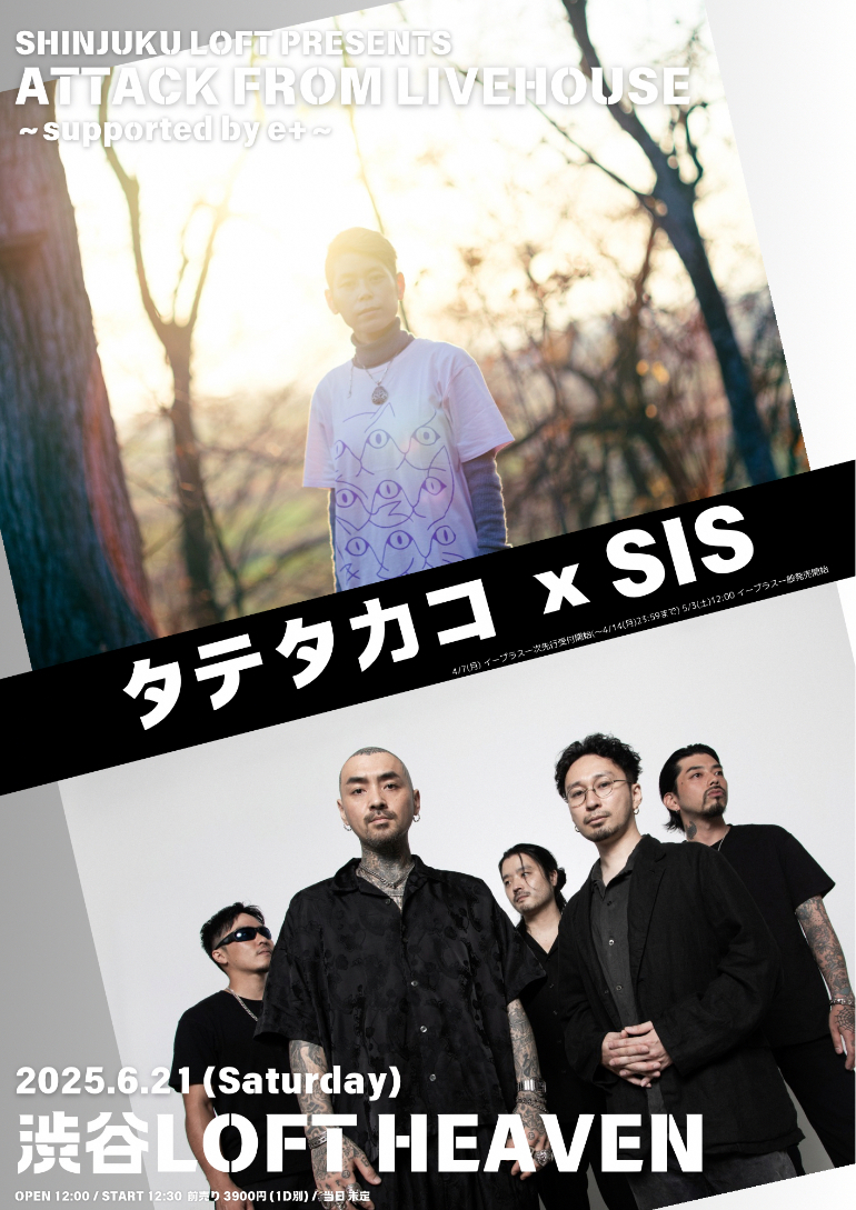 6月21日(土)昼の渋谷LOFT HEAVEN公演には、SISとタテタカコが出演。