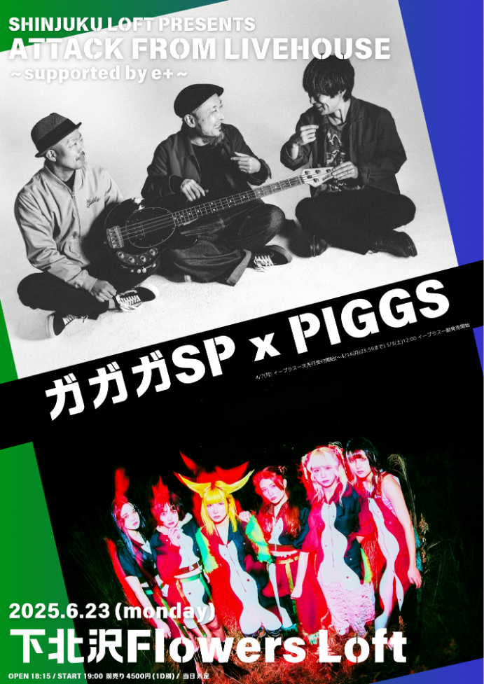 6月23日(月)の下北沢Flowers Loft公演には、PIGGSとガガガSPが出演。