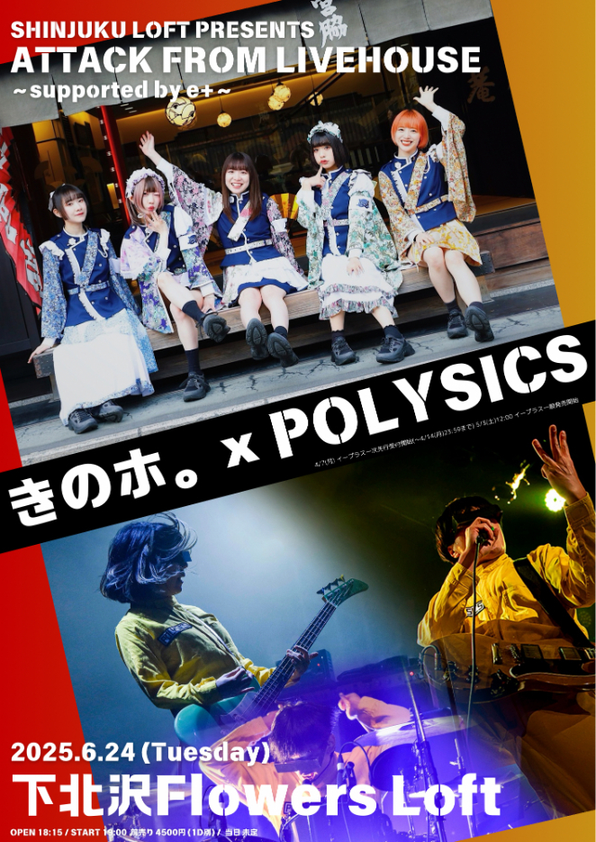 6月24日(火)の下北沢Flowers Loft公演には、きのホ。とPOLYSICSが出演。