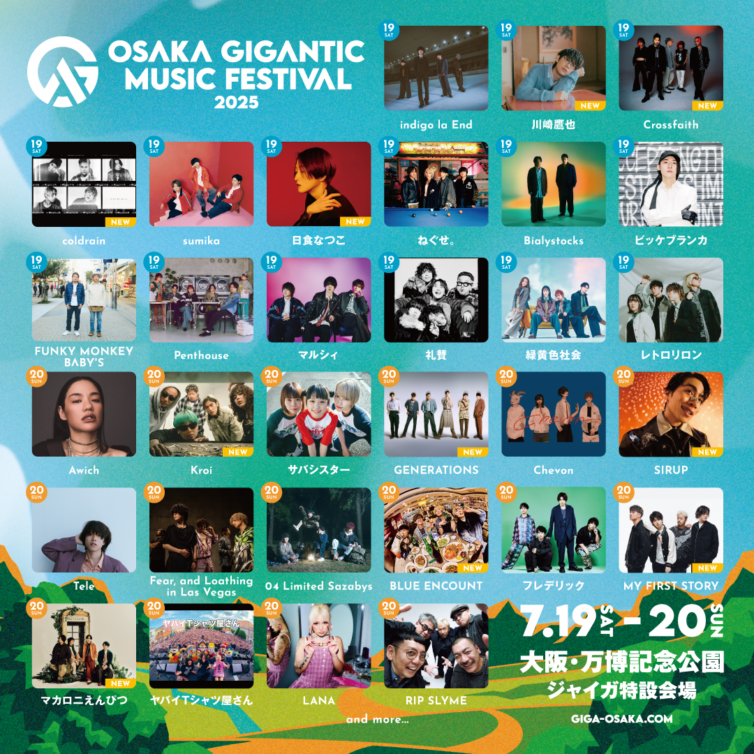 2025年7月19日(土)・20日(日)に大阪・万博記念公園にて開催される『OSAKA GIGANTIC MUSIC FESTIVAL 2025』の第2弾アーティスト10組と日割りが発表された。