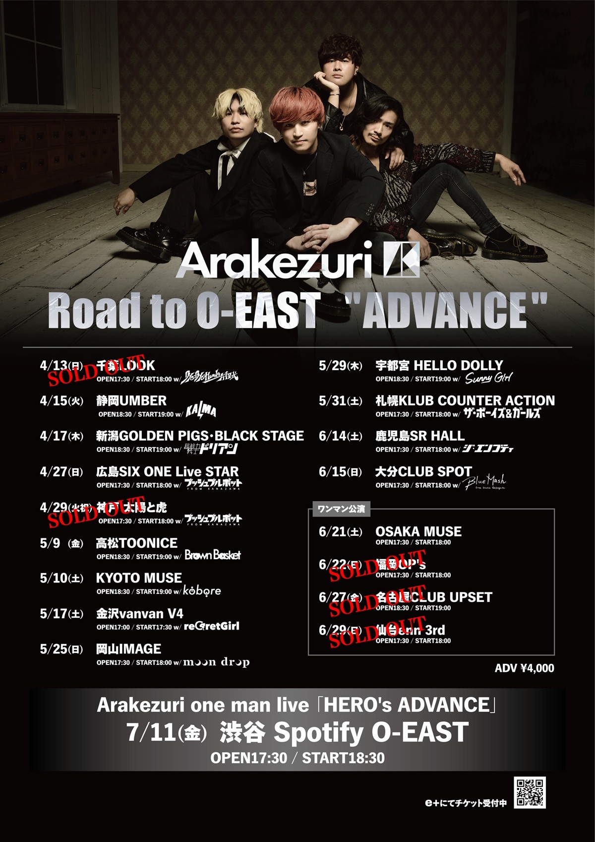そして本作をリリースした後、4月13日(日)からは全国ツアー『Arakezuri Road to O-EAST “ADVANCE” 』がスタート。7月11日(金) には自身最大キャパとなる渋谷Spotify O-EASTでのワンマンライブも控えている。ソールドアウトとなっている会場も続出しているので、チケット入手はお早目に。