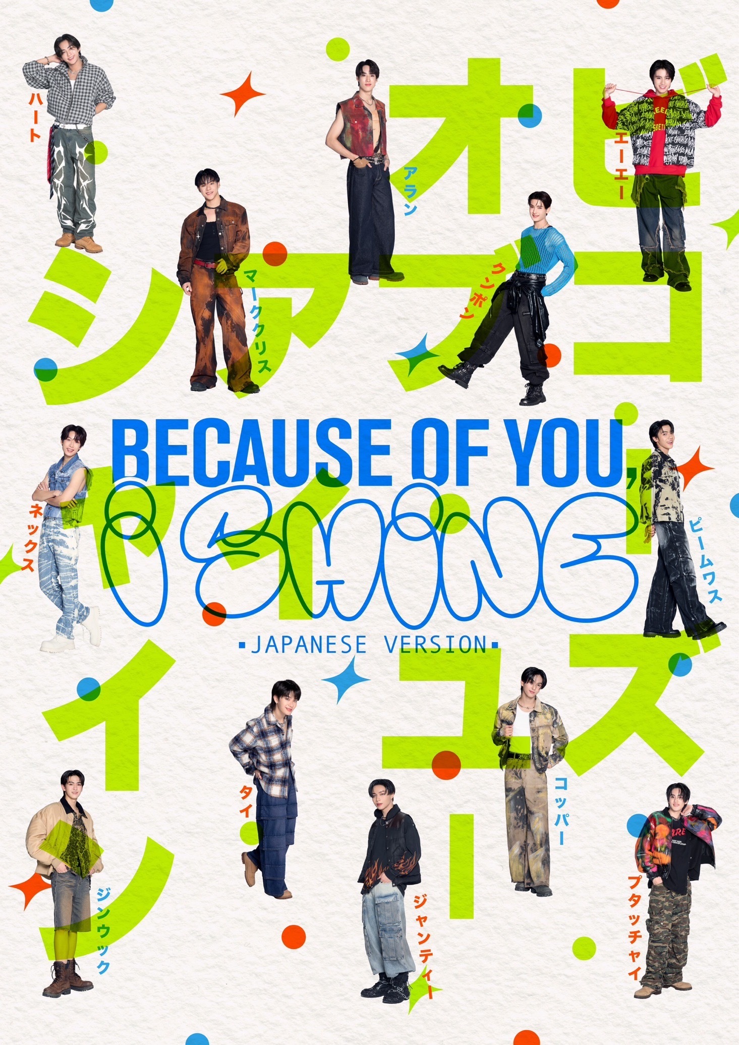 サバイバルオーディション番組を経て2023年にデビューしたバス。同楽曲はデビューシングル「Because of You, I Shine」を日本語でアレンジしたもので、「君がいるから、僕たちは輝ける」というファンへの感謝のメッセージが込められている。日本語詞は、日本のファンに想いがより深く届くよう、ラッパー/ソングライターのGASHIMA(WHITE JAM)が手がけた。メンバーは慣れない日本語の発音に苦労しながらも、レコーディング前に専門家から指導を受け、収録当日もサポートを受けるなど、日本のリスナーの心に響く歌声を届けようと熱心に取り組んだ。