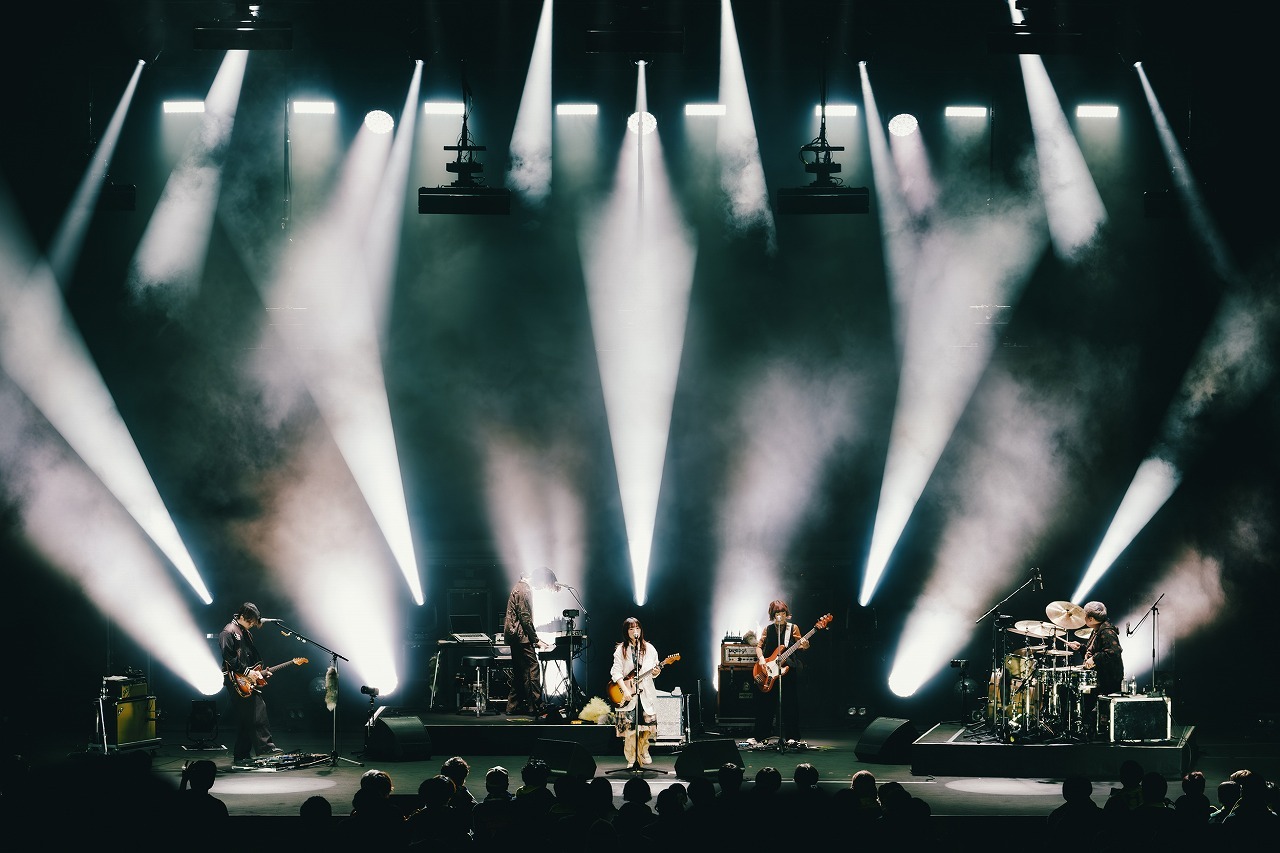 「フォーラム、最高です。終わるのもったいない」と、初の試みも盛り込んだここまでの時間を味わっているようなにしな。その終盤に最新曲であり、ドラマ『リラの花咲くけものみち』主題歌である「つくし」がセットされた。音源でのストリングスが印象的なシンプルで豊かなアレンジを活かしつつ、バンドのしっかりした足腰が感じられるオーセンティックなアンサンブルに乗せて、いつか終わる命を人間のみならず、自然の移り変わりなどにも映して表現した歌詞が心に広がっていく。今回の一つの見せ場であるこの曲に続いて、代表曲であり、「つくし」とはベクトルの異なる死生観を漂わせる「ヘビースモーク」に繋いだことも、彼女の表現者のスタンスをいい意味でずっしりと感じる構成だった。そして、本編ラストはまさに人と人とが呼応・反応し合って生きる、その体感が音楽になったような「わをん」。さかんに客席にマイクを向け、それに応えるオーディエンスと作る空間が必然に感じられる瞬間だ。モノローグ調のヴァースと突き抜けるようなサビの美しい対比という、新しい歌の表現にも思わず聴き入ってしまった。賑やかに終盤を締めくくるのではなく、“生きるとは?”という少し重めのテーマでありながら、しっかり聴き手の心に錨を下ろすような印象に残るエンディングとなった。