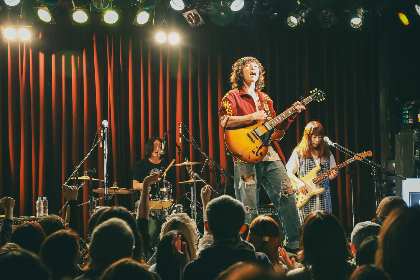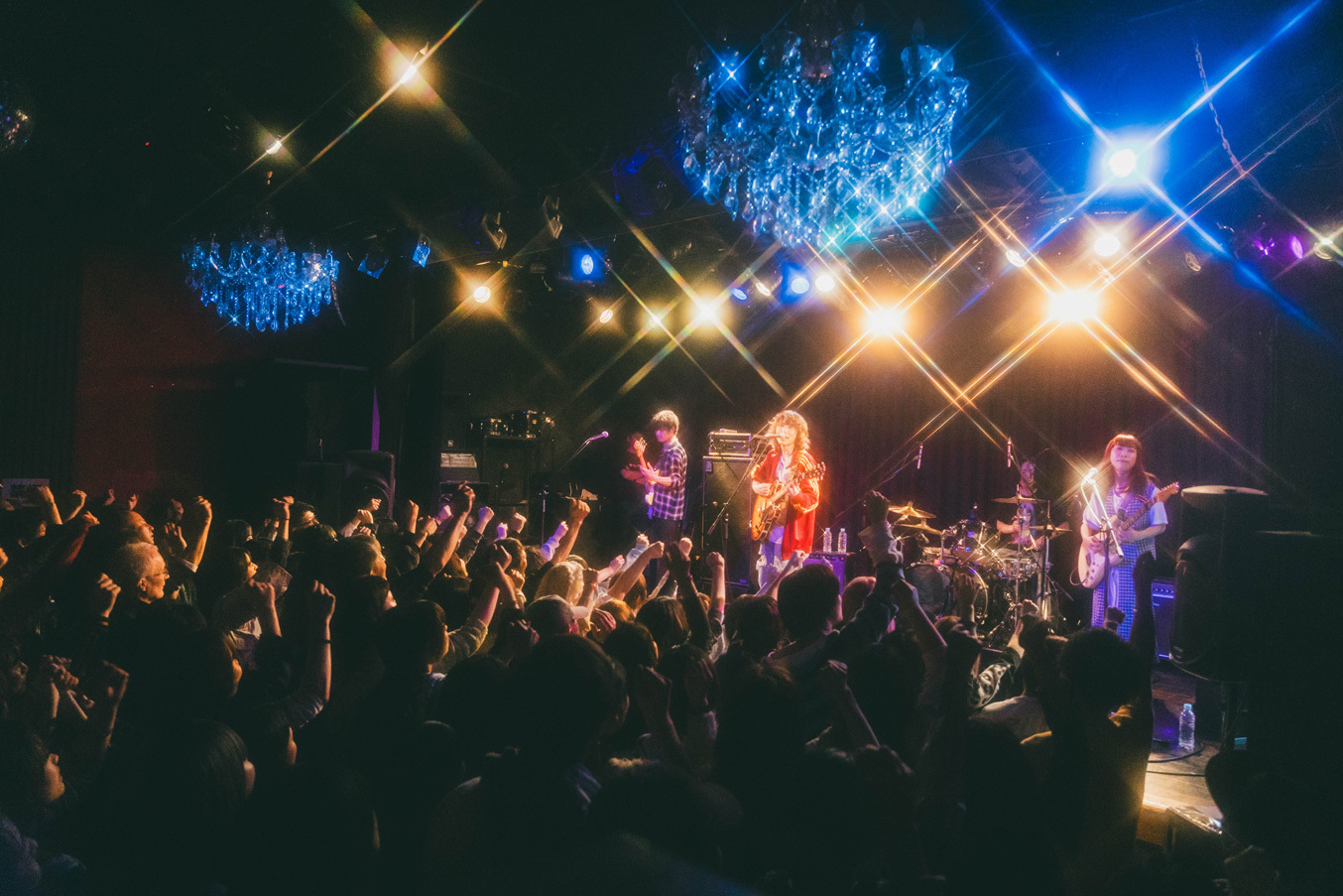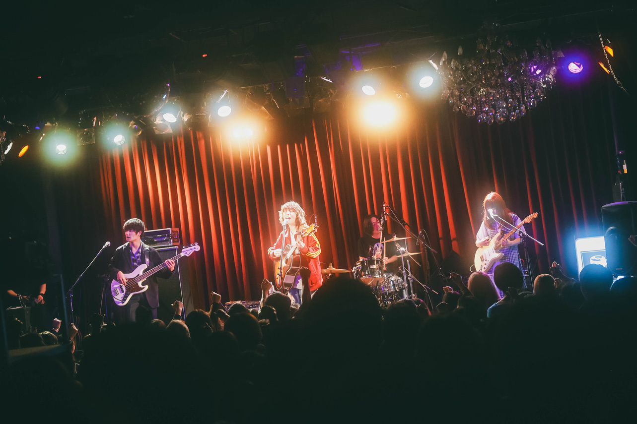 終わり、疋田が「さっきあの瞬間しか鳴っていない音楽……。凄い特別だったと思いませんか?」と話しかけたように、本当に凄い特別な時間であった。凄い特別な時間は、まだまだ続く。杉浦の「選ばれたのは、この曲です!」と歌われたリクエストカバーは、スピッツ「チェリー」。あの特別感があるイントロが鳴っただけで、観客たちは喜びの心の声が漏れ聞こえるくらいに喜んでいる。そのまま、こちらもイントロですぐわかり、すぐ観客たちが体を揺らし始めたHelsinki Lambda Club「ユアンと踊れ」。そこからニューアルバムよりMVも制作されて早くも人気曲となっている「つもる話し」「sha na naなjourney」へ。観客たちの手が一斉にあがり、より会場は盛り上がっていく。