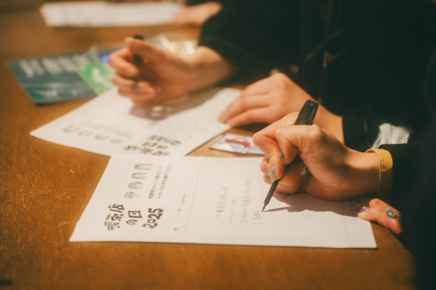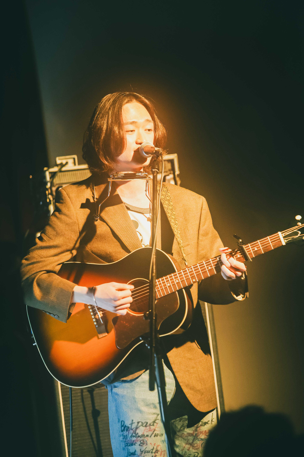 また今年は例年には無かった目玉企画として、『喫茶店の日2025』のためにオリジナル曲を披露することに。まずは杉崎が作詞作曲した「帝国喫茶でまちあわせ」の歌詞が舞台後方のスクリーンに映し出される。制作秘話も語られて、その杉崎が弾き語り2番手として、「なんとなく」を歌う。ボブ・ディランの如く首からホルダーで装着したハーモニカを吹きながら、アコギで弾き語った。
