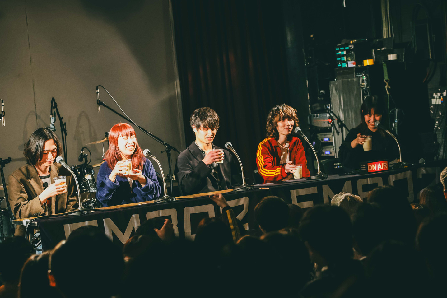 内容は2部構成になっており、第1部は、去年同様にFM802『EVENING TAP』(週月曜~木曜・18:00〜21:00)とのコラボ企画で、番組DJの田中乃絵が司会進行を務め、出張ラジオと題したラジオ生放送モチーフのトークライブが催された。メンバーの杉浦祐輝(Gt.Vo)・疋田耀(Ba)・杉崎拓斗(Dr)・アクリとミックスジュースを飲みながらトークを行なう。