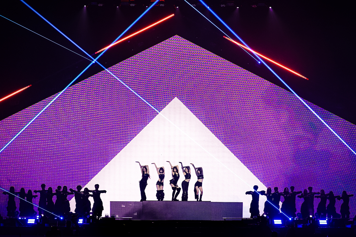 三角形のLEDは「熱い炎の中で生まれ変わったLE SSERAFIM」を象徴し、新鮮な印象を与えた。さらに、多数のダンサーや印象的なVTR映像、楽曲の雰囲気を最大限に引き出すレーザーショーなどが、公演への没入感を高めた。