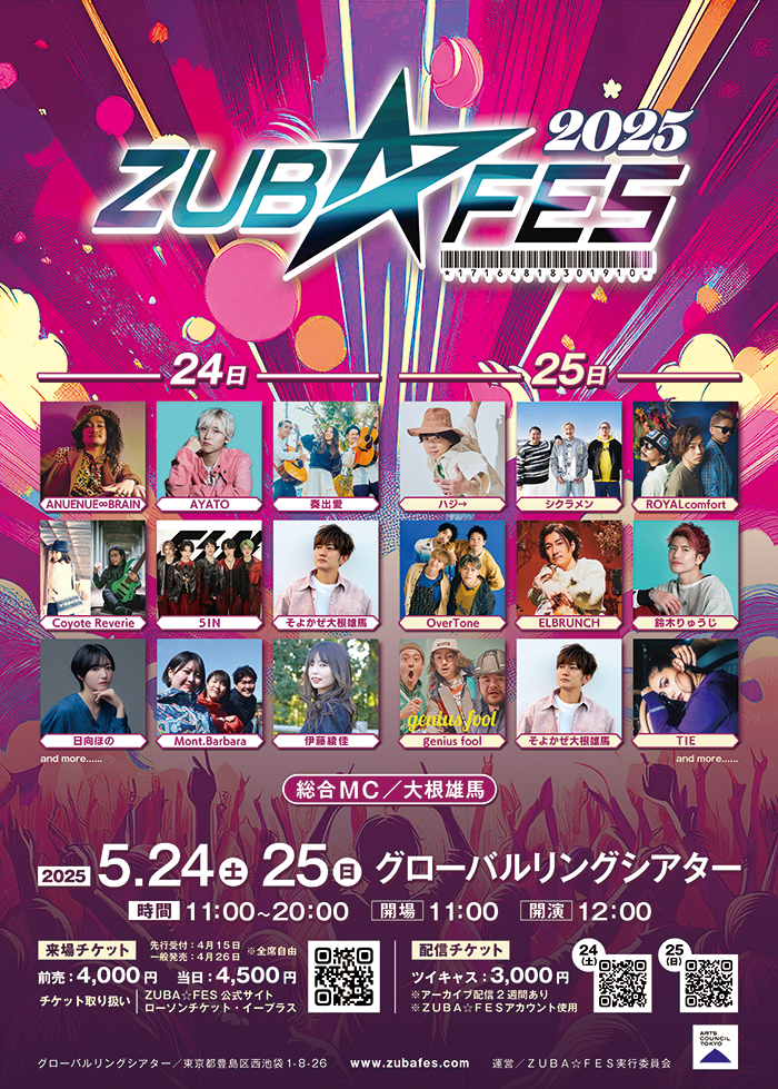 2025年5月24日(土)~25日(日)グローバルリングシアター(池袋西口公園)にて、『ZUBA☆FES 2025』が開催されることが決定した。