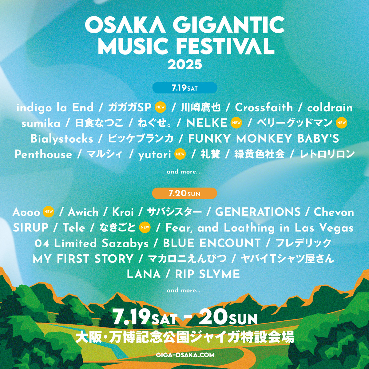 2025年7月19日(土)・20日(日)に大阪・万博記念公園にて開催される『OSAKA GIGANTIC MUSIC FESTIVAL 2025』の第3弾アーティストが発表された。