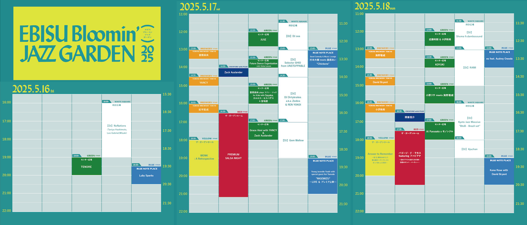 『EBISU Bloomin’ JAZZ GARDEN 2025』タイムテーブル