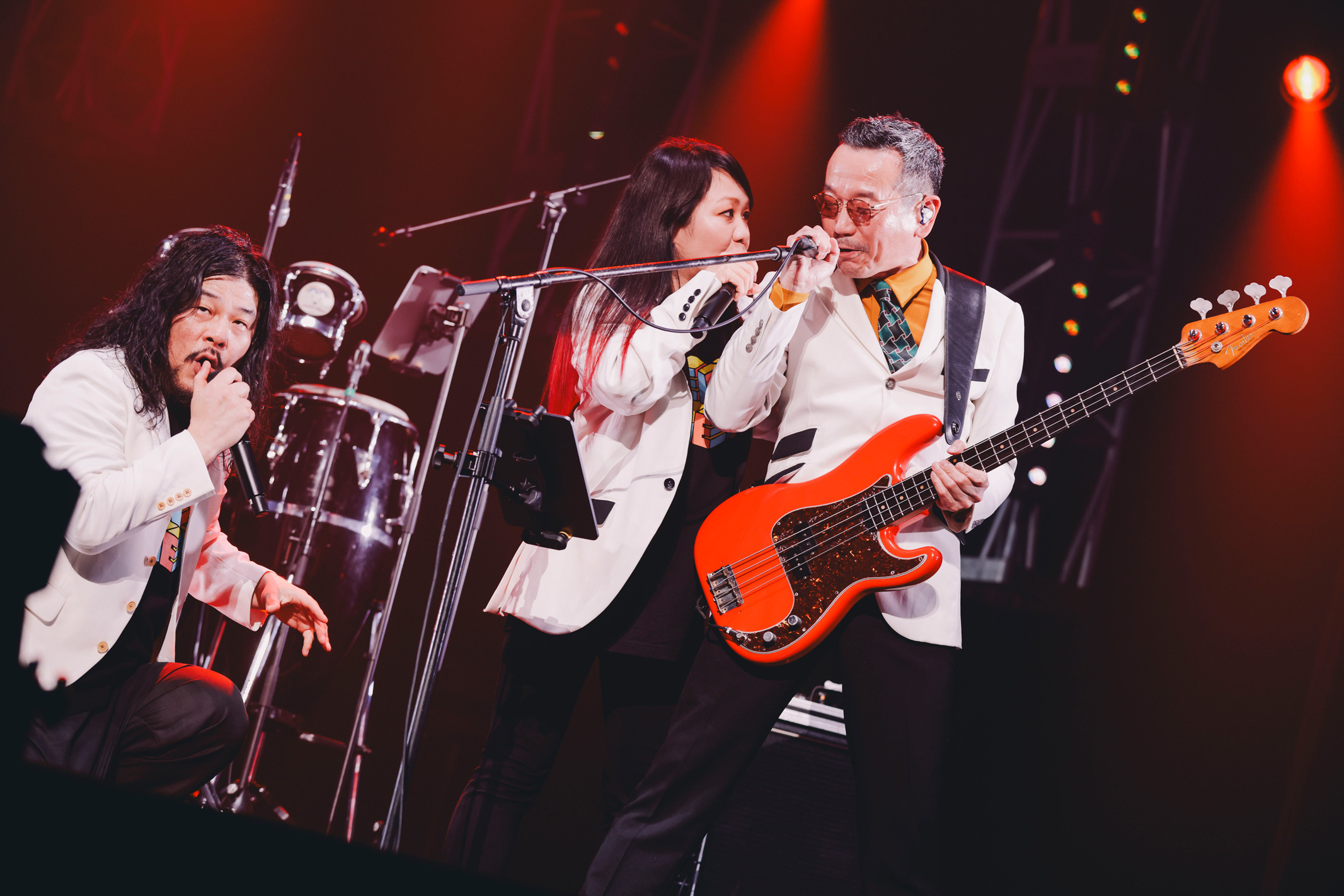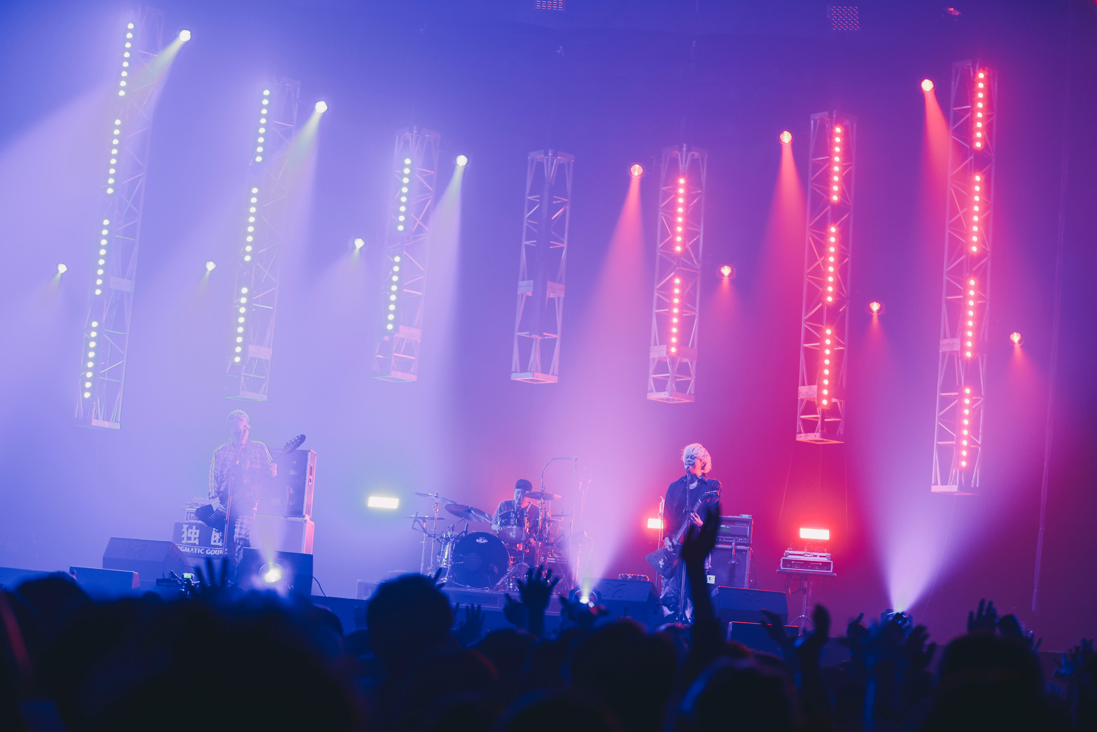 ライブ後半、昨年末にKOUICHIが手術により公演の見送りや延期があったことに触れつつ、「すぐ病院行きや。何回行っても大丈夫。大げさでバカにされても、今生きてる人はそんな人ばっかり。かっこいい人はすぐ死んじゃう。カッコ悪めにいきましょう。長生きしてまたやろう。でも、この瞬間はみんなと一緒に死ぬくらいの気持ちで来てる。心中するくらいの気持ちでいこか」と、「その向こうへ」からさらに熱量を上げていく3人。何度も前のめりになりながら観客を煽り、必死に足掻き、時に泣き叫ぶように歌い、音を鳴らしていく。「第ゼロ感」何度もピークを生み出し、暴発するようなテンションを作り上げていく。