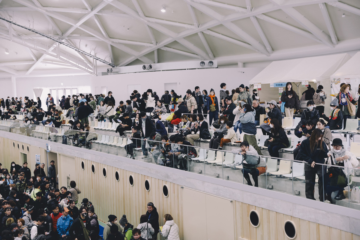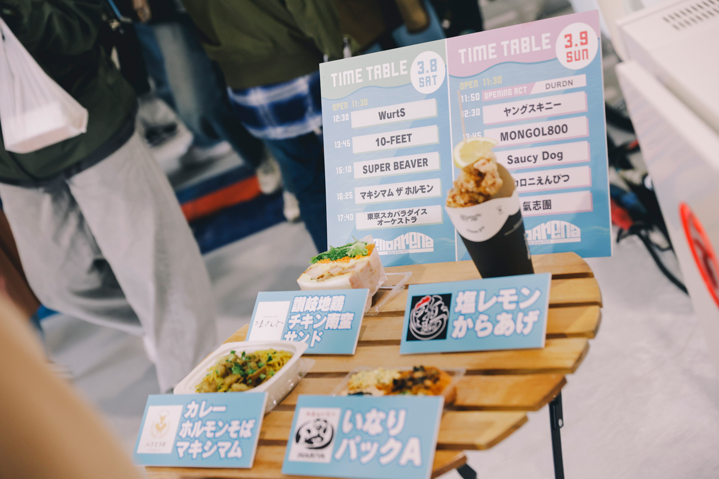 メインアリーナで音楽が鳴り響くなか、お隣のサブアリーナではチケットパスの交換やグッズ販売だけでなく、地元・香川のKBS瀬戸内放送のグルメ情報番組「ヒルペコ」からフードテントが登場。この日のサブアリーナは入場無料ということもあって、イベントの雰囲気を楽しみたい人、グッズを買いにきた人などたくさんの人で終日大賑わい。