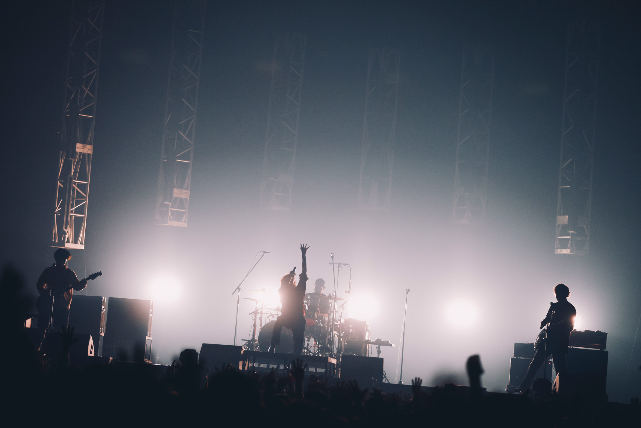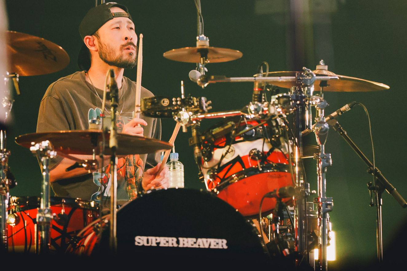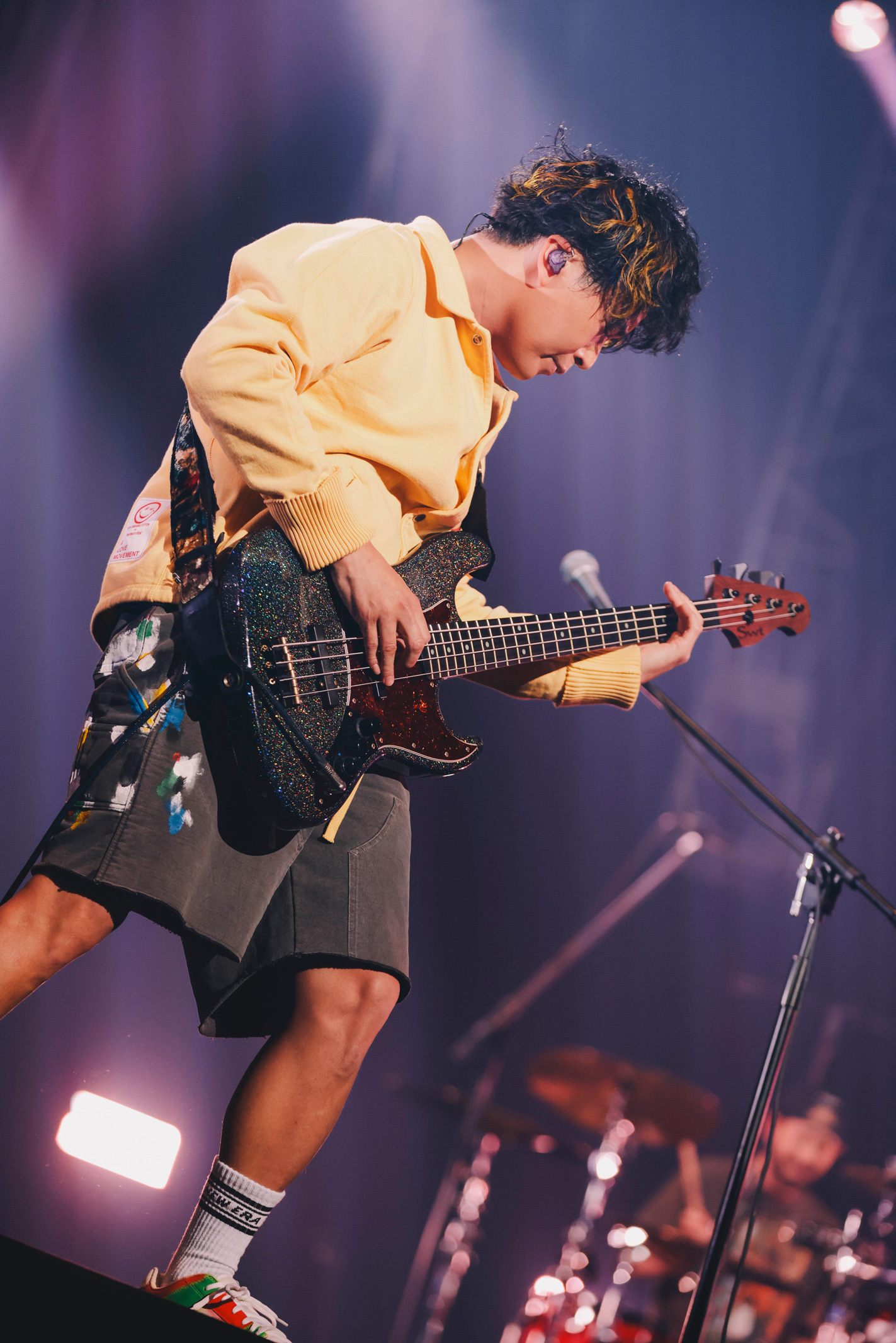 「”ちょっとここ、すごいんじゃない?”って言わせたい。オレたちが最高の歌を作るんじゃない。オレたち“で”最高の歌を作るんですよ!」と、「ひたむき」へ。柳沢亮太(Gt)の紡ぐギターがじわじわと心情を熱く高めていく。「記念すべきイベントに呼んでもらえることは光栄。音楽の可能性が増えていくのは素敵なことだと思っています。でも、呼んでもらうのは当たり前じゃない。一瞬々々が、一音々々が勝負。4人で鳴らす音楽はしょうもない。あなたと一緒にド派手に!」。4人+αで無限のライブを作り上げようと、渋谷龍太(Vo)が大きく息を吸い、ひと小節を歌うだけで大合唱が沸き起こったのが「美しい日」だ。この瞬間、この空間で唯一無二の美しい時間を作り上げようとする4人。上杉研太(Ba)の心を鼓舞するようなエネルギッシュなベースラインに魅せられ、拳が高くつきあがる。歌詞の世界を踏襲するような、美しくも生命力に満ちた景色が広がり、サビのピークでは何ともいえない開放感が襲ってくる。