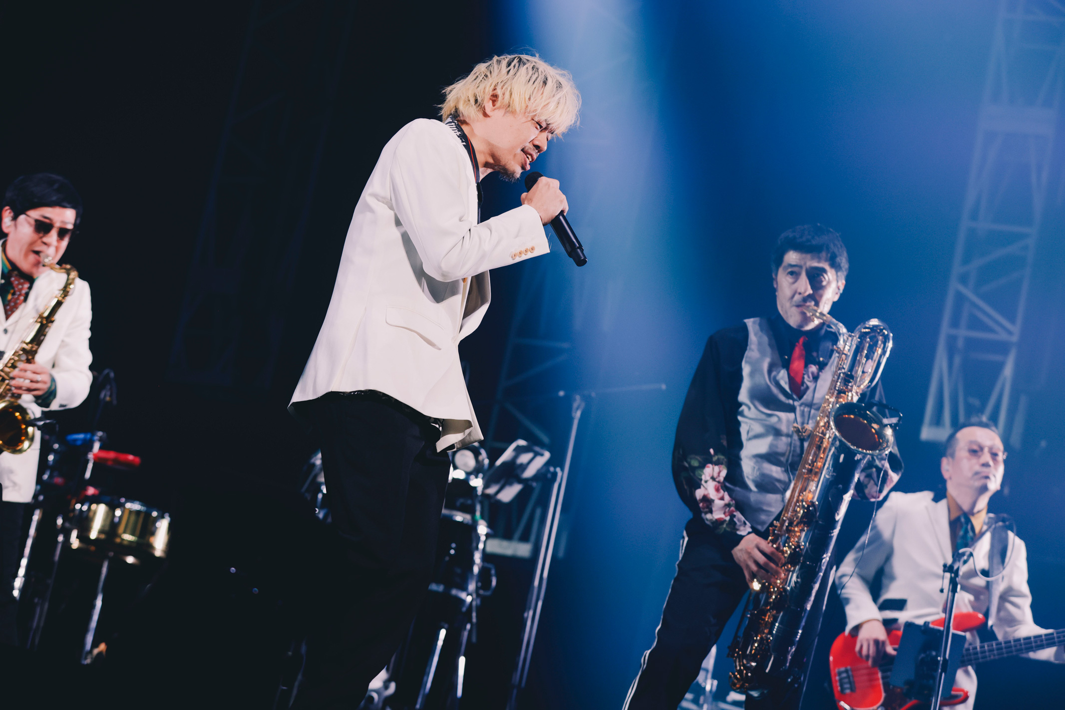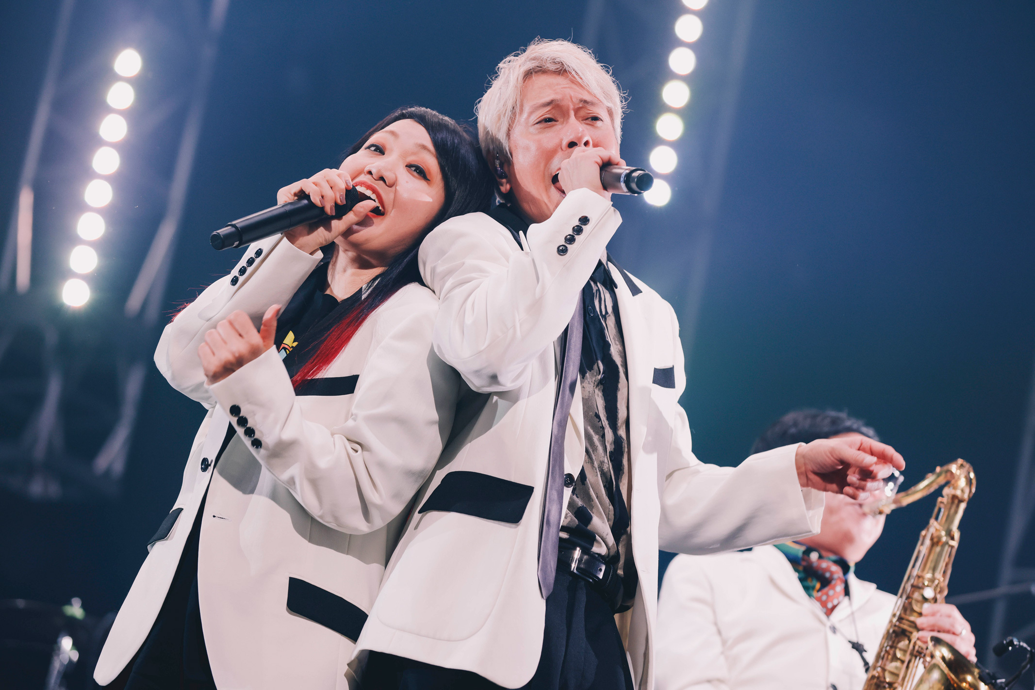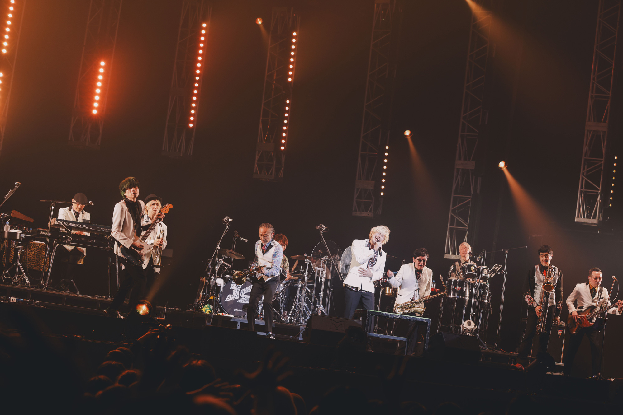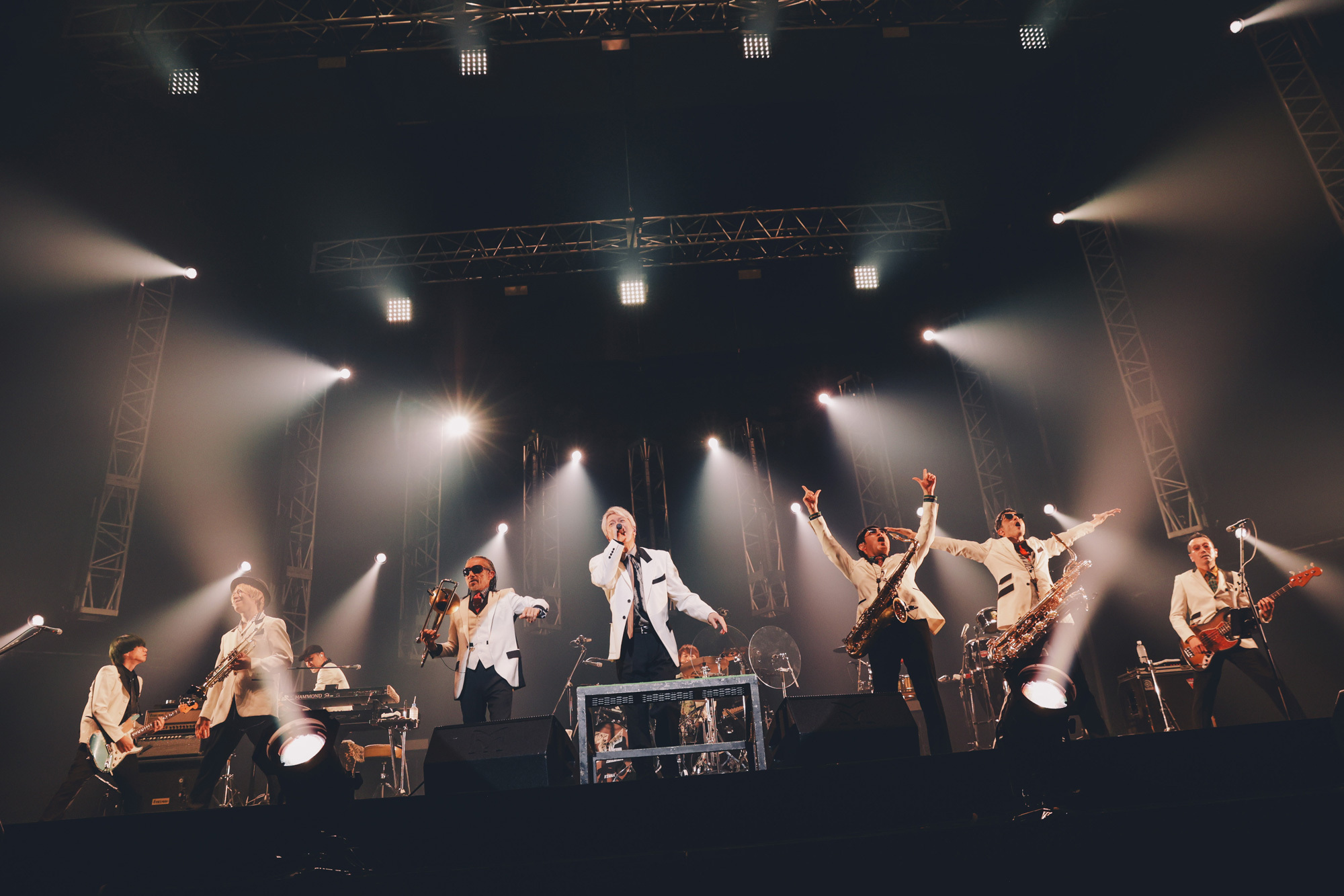「帰りたくないね。もっと名残惜しい夜に!」、TAKUMAが名残惜しそうに言葉を漏らし「風に戦ぐブルーズ」へと繋ぎ、いまこの瞬間の気持ち良さをぎゅっと音に詰め込んでいく。ラストは「もうひと盛り上がりしようぜ!」と「Paradice Has No Border」で抜群のスカパラサウンドに魅せられ、観客はもちろん、ダイスケはん&ナヲ&TAKUMAも再登場! アンコールでは「Dale Dale!~ダレ・ダレ!~」で盛大に踊り明かしたあと、「本当に幸せです!ありがとう!帰る時も幸せでいてね。これからも幸せでいてね。また会おうね!」と、その場にいた観客みんなの気持ちを代弁するようなメッセージを残し、『Hello Arena』初日の幕が閉じた。