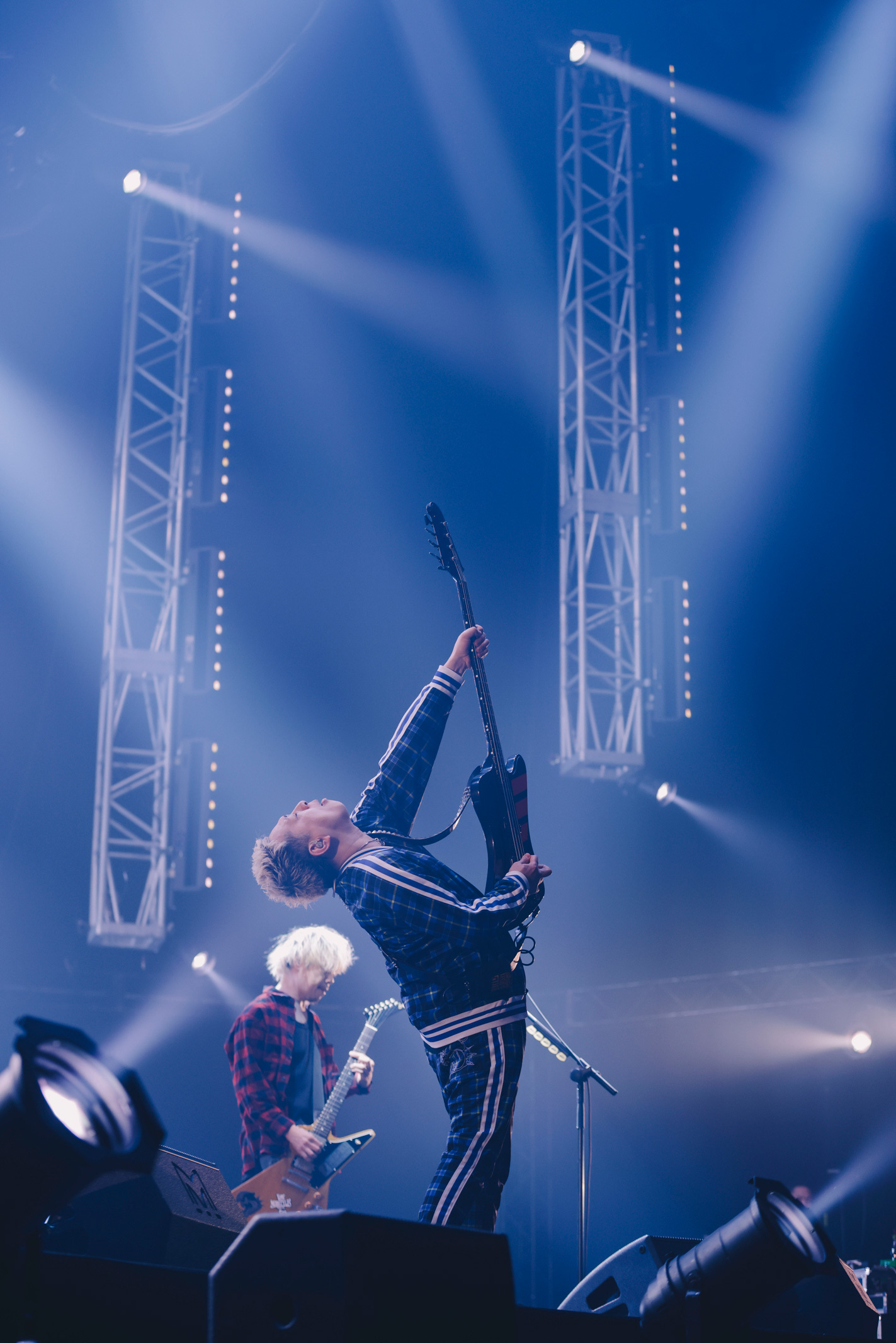 「ここでこのまま死んでしまうくらいの勢いでいきます!」、「VIBES BY VIBES」でがなるように歌うTAKUMAの歌声に心を鷲掴みされてしまう。「バンドのツアーやフェスとか関係ない。今日が今までで一番。もうあんなライブできひん!ってなるようなライブを。“あれが一番ヤバかったよな”みたいなライブを! どんどんいくぞ!」、昂る気持ちをそのまま音にぶつけていく3人。