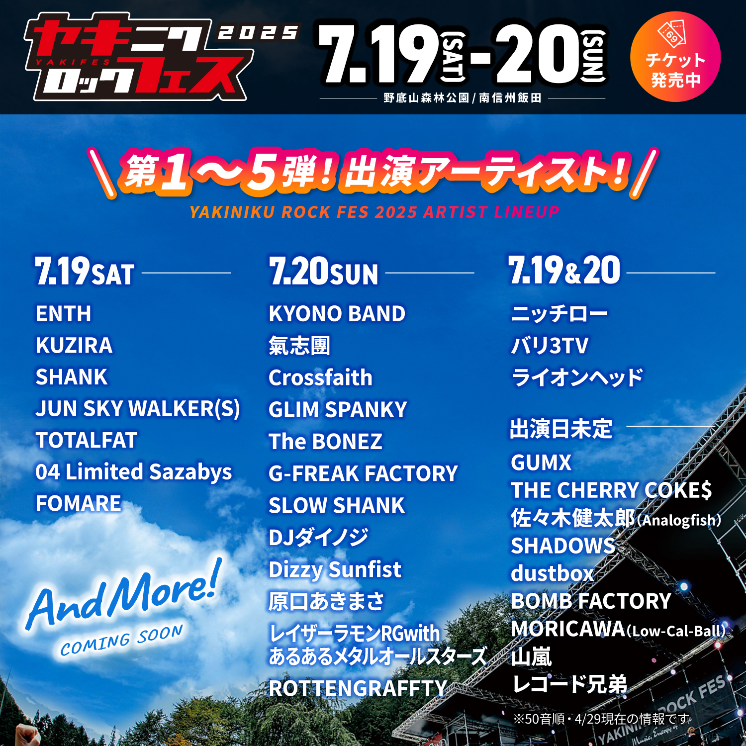 同時に一般チケットもイープラスにて販売開始となった。4人で来場するとお得な「4人割グループチケット」や会場で焼肉ができる「手ぶら焼肉券」も発売中。